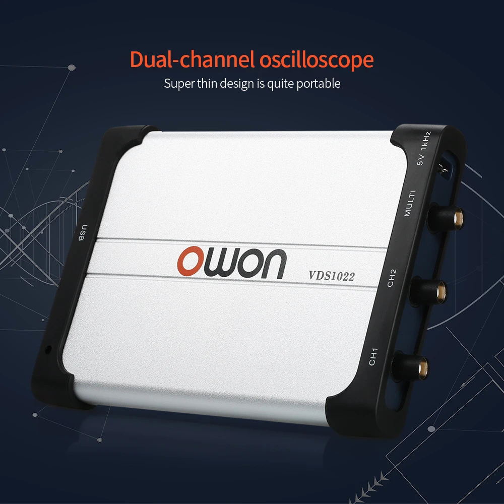 Двухканальный осциллограф, очень тонкий дизайн довольно портативный.