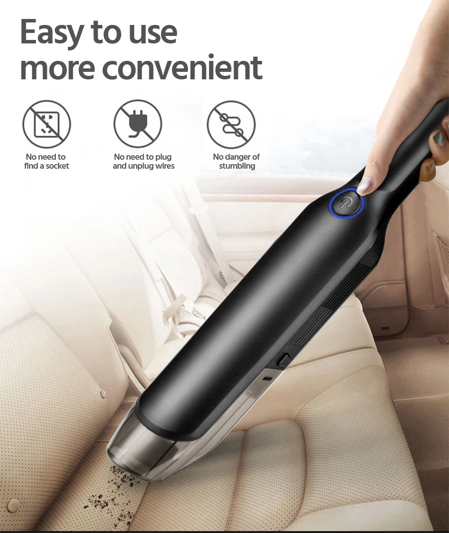 ✅【Беспроводной, легкий и портативный 】 этот ручной вакуум не содержит шнура, что дает вам больше удобства для вашей работы по очистке. Это всего лишь 600 г, легкий и компактный дизайн этого ручного переменного тока помогает освободить ваше движение везде для очистки ваших лестниц, кухни, автомобиля или труднодоступных углов. Самый легкий портативный пылесос для автомобиля с силой всасывания более 5 кПа. Легко носить с собой, хранить и помещать в вертикальном положении.
