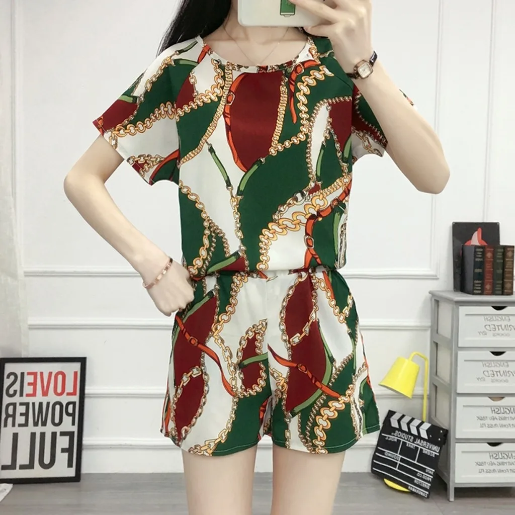 Fashion Women Summer Split 2 Piece Short Sleeve Set Casual Casual Printing Suit