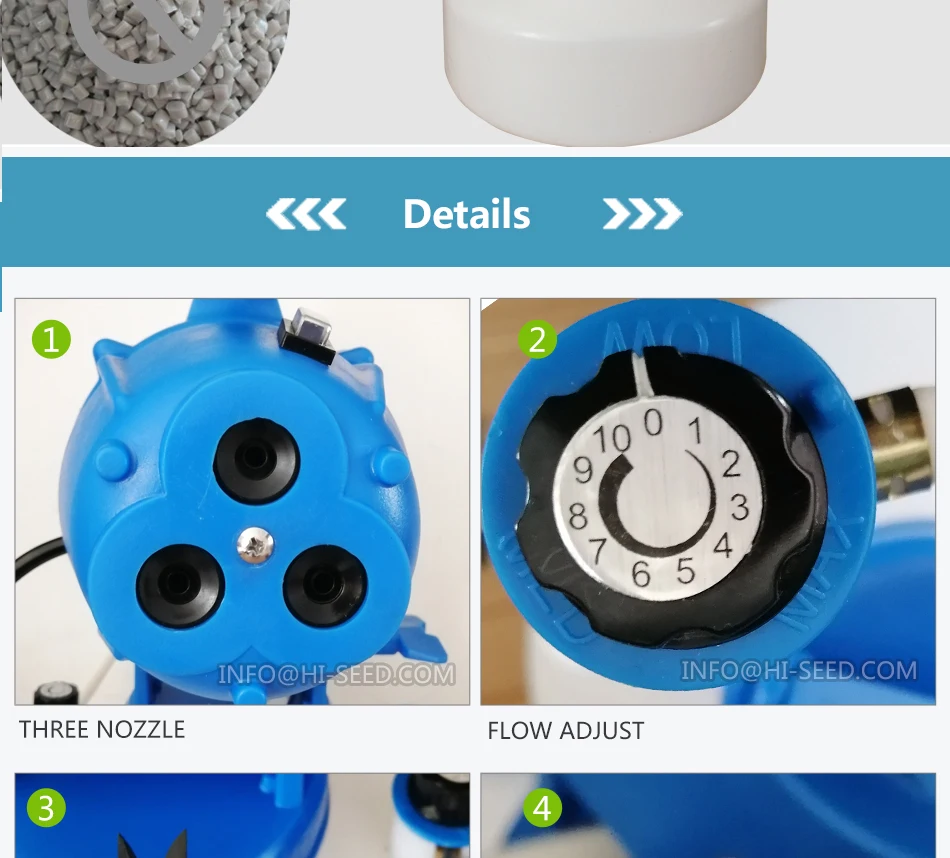 Название продукта 2792 ULV распылитель холодной воды Бренд HD Объем бака 4L Напряжение 220 В/110 в 50-60 Гц Мощность 1000 Вт Размер 25*42*25 см Распылительная насадка 210 мм Объем распыления 0-19 л/ч Размер капли 7-30 мкм Длина кабеля 5 м Эта машина предназначена для двойного назначения дезинфекции и инсектицида. Все контактные части аппарата изготовлены из специального промышленного пластика. Три Насадки, 4 "Диаметр впуска воздуха и моющийся фильтр для обеспечения низкой температуры работы головки машины, оснащен распылителем регулирующего клапана Подходит для различных эмульгируемых водных препаратов, это идеальное оборудование для дезинфекции и инсектицидных компаний. Основная цель: Анти-САРС, анти-денге боец · Изготовлен из полиэтилена высокой плотности промышленного пластика. Высокопрочная кислота и щелочь. Пероксиуксусная кислота может быть распылена.