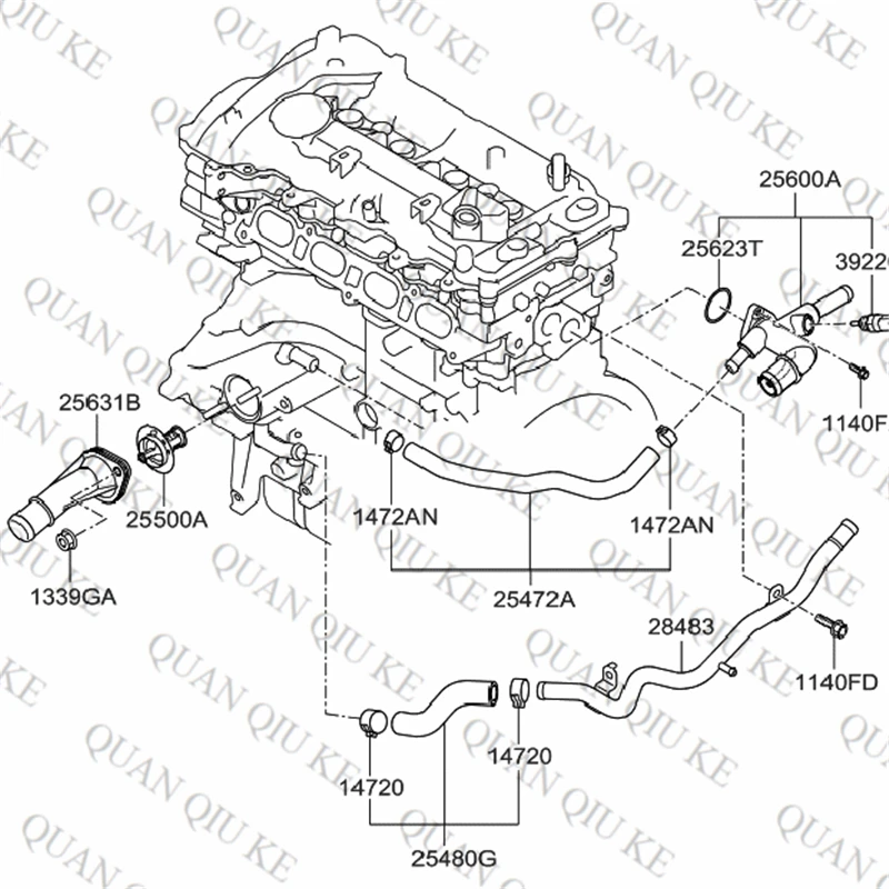 Engine Thermostat Assy Coolant Inlet Fitting= 25631-2B050 Thermostat= 25500-2B000 FITMENT: 2018-2019 Accent 1.6L 2011-2013 Elantra 1.6L 2011-2017 Veloster 1.6L 2014-2016 Forte 1.6L 2014-2016 Forte Koup 1.6L 2018-2019 Rio 1.6L