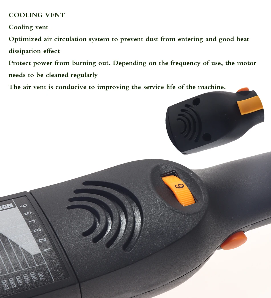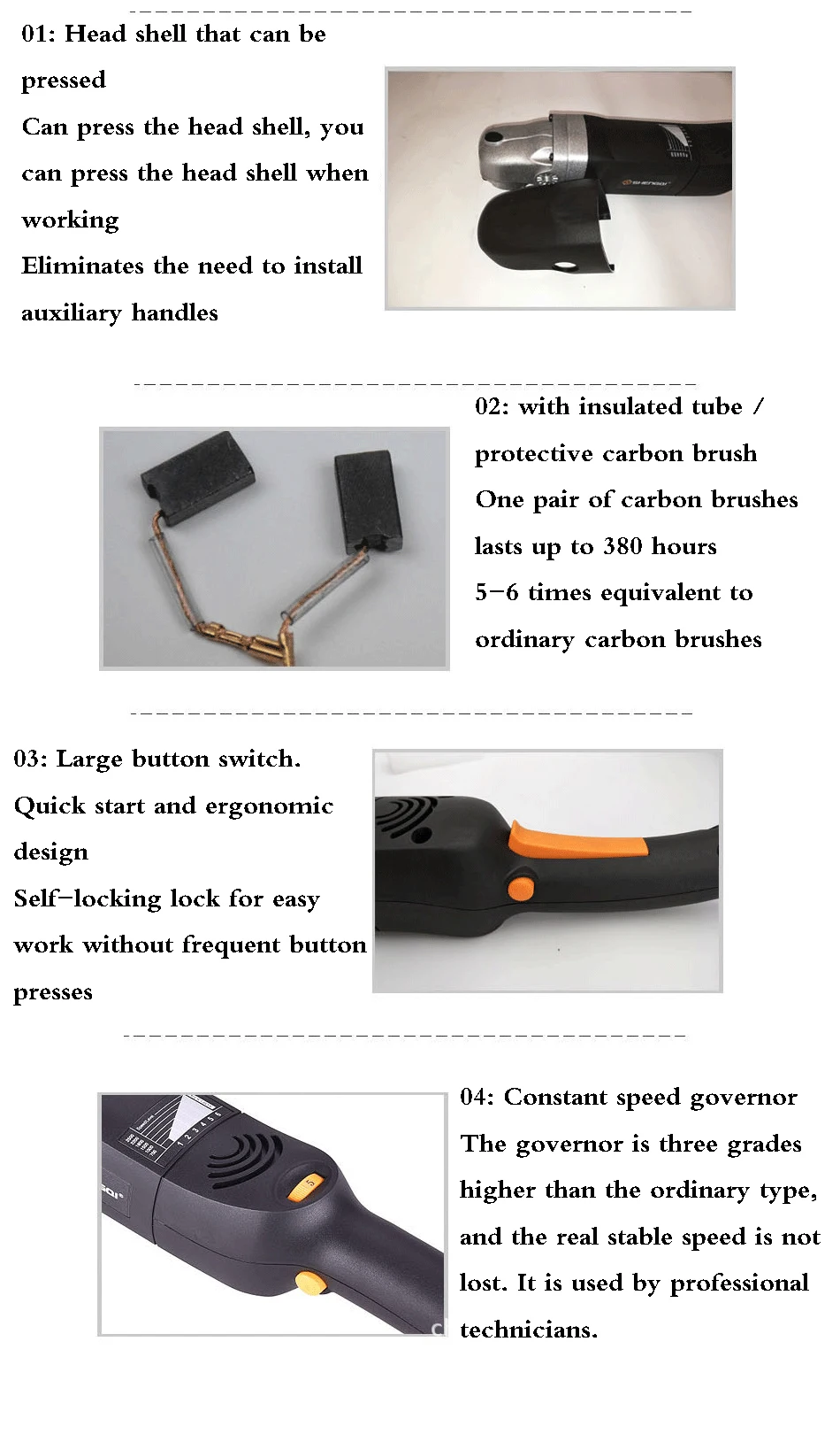Основные параметры Модель: GL802 Номинальное напряжение: 220 В | 110 В Номинальная частота: 60 Гц | 50 Гц Номинальная мощность: 800 Вт Скорость: 700-2500р/мин Липкий диаметр диска: 12,5-15 см Основные преимущества 1. Машина мягкая-начала предотвращать случайные повреждения, вызванные быстрым запуском и предотвращать брызги полировального агента во время запуска. 2. 6-ступенчатая бесступенчатое регулирование скорости, встроенный чип для того чтобы контролировать нагрузки отзывы, постоянная скорость вращения выходного вала модуля 3. Двухступенчатая структура редуктора, которая может достигать в два раза более мощного выходного крутящего момента обычных полировальных машин и способна непрерывно работать при средней нагрузке. 4. Эргономические принципы, эргономичный дизайн, уменьшает длительную усталость