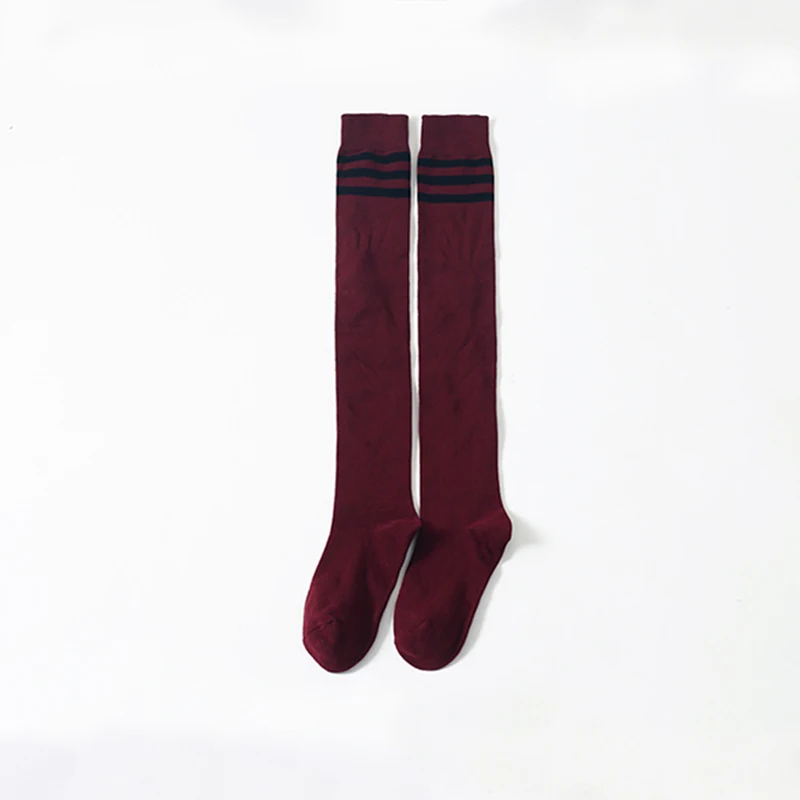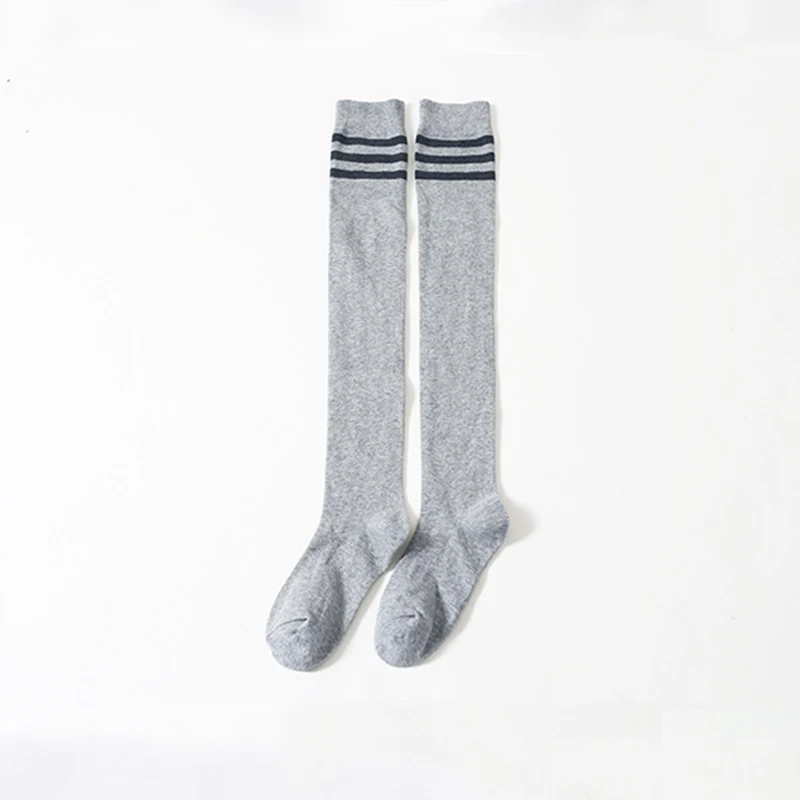 Женские хлопковые чулки выше колена, 2 пары/Лот, длинные носки с тремя полосками и манжетами, нескользящая Спортивная одежда для девочек-подростков