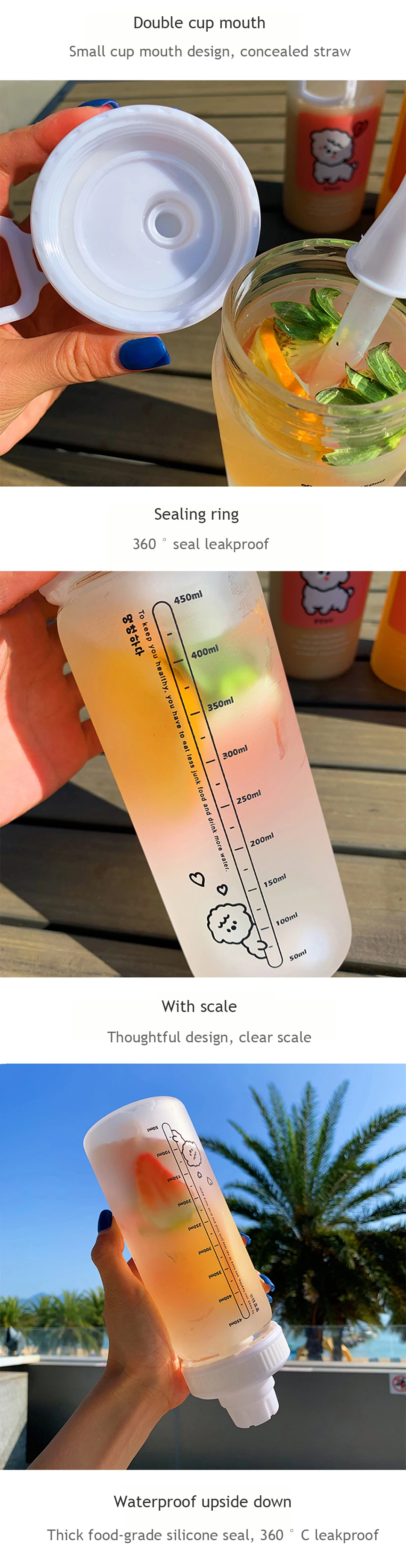 100% новый бренд высокого качества. Особенности: 1. Высокое боросиликатное стекло жаростойкий материал, здоровье и безопасность. 2. Милая мультяшная чашка, герметичное Силиконовое кольцо, герметичное уплотнение на 360 °. 3. Солома изготовлена из пищевого силикона, здоровой и безопасной. 4. Поставляется с ручкой, портативной и удобной. 5. Маленький дизайн чашки, скрытая солома. 6. Купите бутылку воды и следуйте за магазином/продуктом: Бесплатная щетка для чашки.