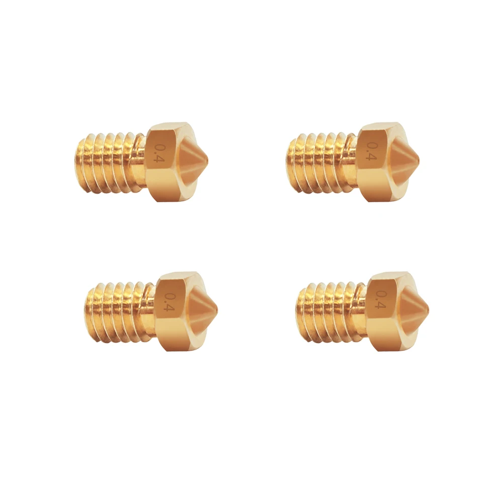 Совместимость: 1,75 мм нити Материал: латунь Отверстие Размеры: 0,4 мм Вес: 2 г Сопло: MK10 Печатные материалы: PLA, гибкая резина, дерево, ТПУ Резьба винта: M6 Диаметр шестигранника: 6 мм Скорость печати: 20-150 мм/сек.