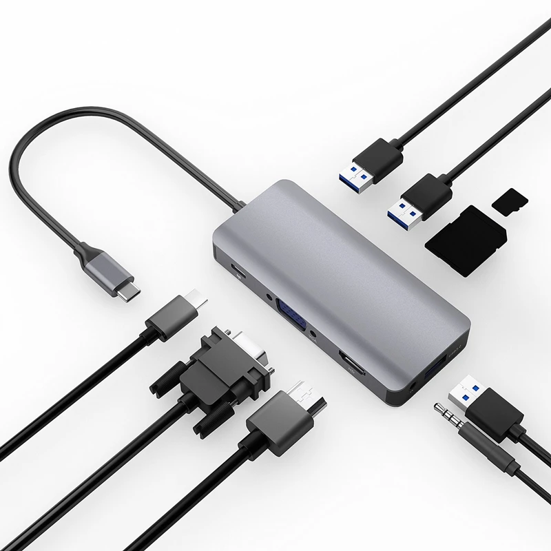 Док-станция с разъемом типа C HDMI VGA USB3.0 аудио концентратор питания для ноутбука Mac book Pro HPDELL поверхность Lenovo Samsung