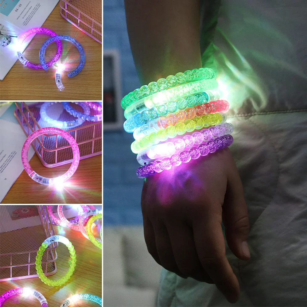 Особенности: 1. Супер крутой светодиодный браслет-светильник. 2. Различные цвета на ваш выбор. Светильник с несколькими сочетаниями ярких семи цветов. 3. Акриловый пластик, 3 * AG3 кнопочные ячейки, светодиодный светильник семи цветов. 4. Объем одиночный браслет составляет около 8,5*8,5*1 см/3,35*3,35*0,39 дюйм (ов) 5. Вы можете выбрать ваш любимый цвет доставки смешанных цветов. Посылка включает в себя: 1 x светодиодный легкие браслеты