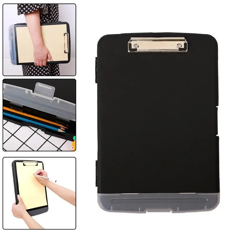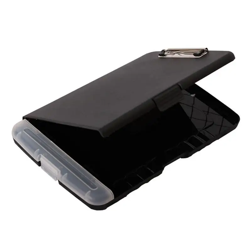 Содержит отдельный отсек для хранения ручек, карандашей и низкопрофильного металлического зажима. Тонкий буфер обмена дизайн коробки для хранения изменяет ваш буфер обмена, чтобы поместиться в большинство портфели и предлагает много места для хранения бумаг, форм, а также блокнотов.