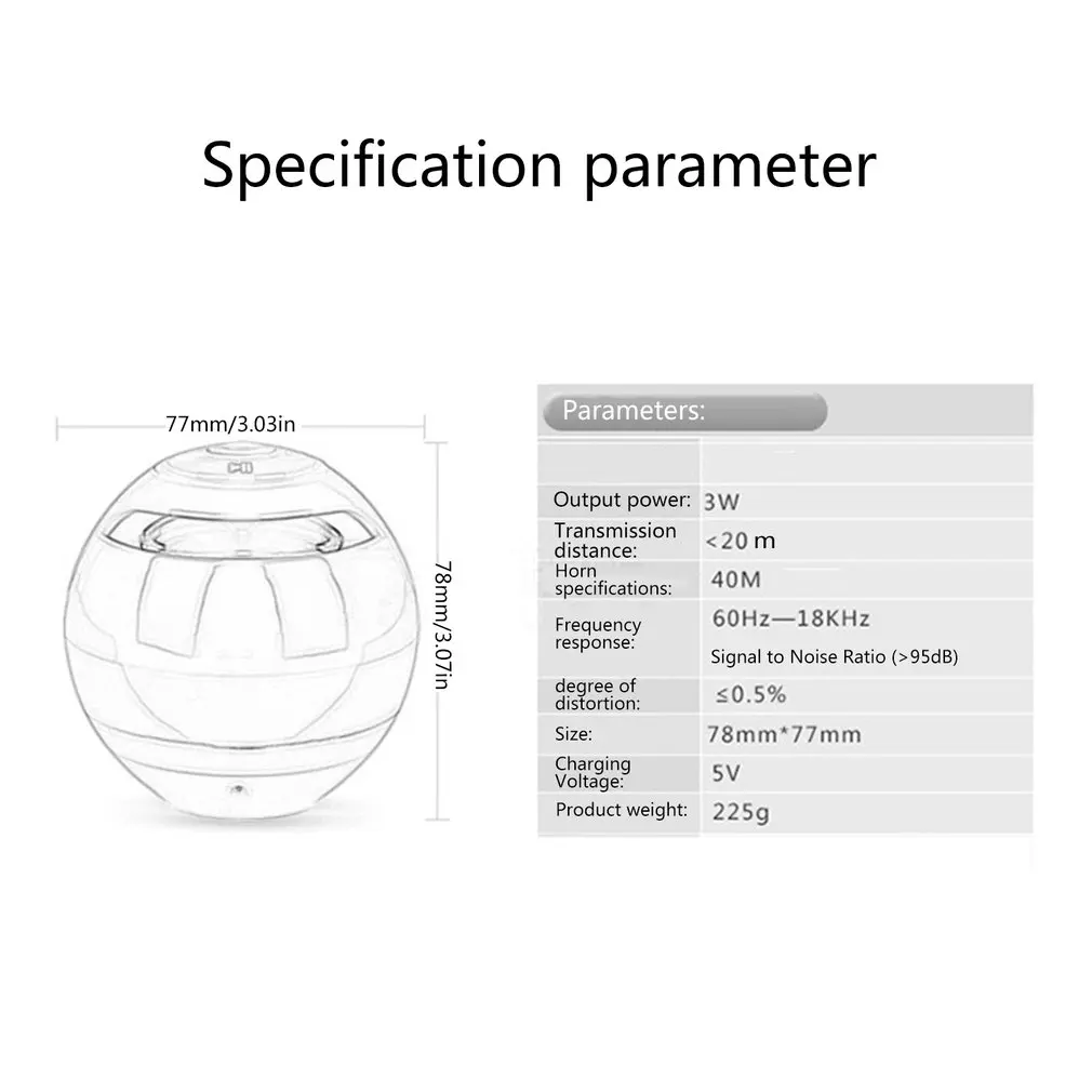 Характеристики: 1. Беспроводное соединение Bluetooth, более стабильное. 2. Аудиовход. 3. Функция fm-радио Встроенная радио антенна, автоматическая программа поиска, поддержка всех каналов в диапазоне 200 Гц-20000 Гц. 4. Micro SD карта прямого считывания после подключения к карте, она может быть воспроизведена. Вы можете удалить удаленный файл через usb-кабель передачи данных. 5. Мини микро USB зарядка, зарядка более удобна, подключи и работай. 6. Звонки по Bluetooth можно брать одной кнопкой. 7.500ма встроенный литиевый аккумулятор, длительное время работы в режиме ожидания, более продолжительное время работы. Описание: 1. Разноцветный дизайн с шариками, простой внешний вид, более красивый. 2. изысканные Подарки, подходят для занятий спортом на открытом воздухе, велоспорта, фитнеса и т. д. характеристики: Bluetooth: V2.1 + EDR диапазон беспроводной передачи: 10 м Напряжение зарядки: 5 В постоянного тока Емкость аккумулятора: 500 мА · ч Нормальное воспроизведение громкости: 2 ч Мощность динамика: 43 Вт Коэффициент звукового шума: частотная характеристика 75дБ: 120HZ18KHZ характеристики: Воспроизведение Bluetooth/fm-радио/громкой связи/режим AUX/воспроизведение tf-карты Цвет: белый, розовый, синий, желтый, черный Размер: 76,9*76,9*78,5 мм комплектация: динамик Bluetooth-1 шт. кабель для зарядки данных-1 шт. аудиокабель-1 шт. примечания по эксплуатации-1 шт. так как размер выше измеряется вручную, Фактический размер изделия может немного отличаться от указанного выше размера.