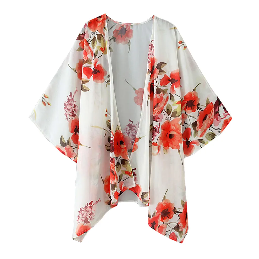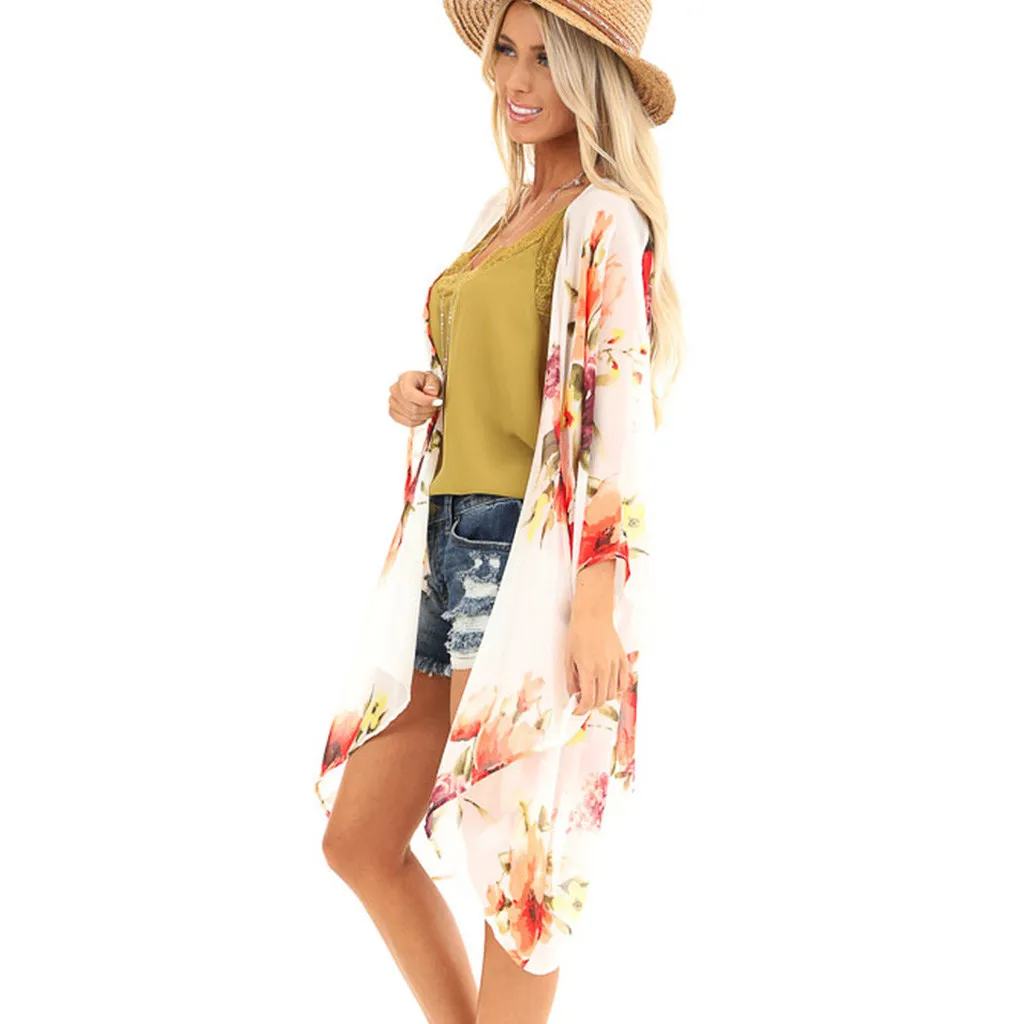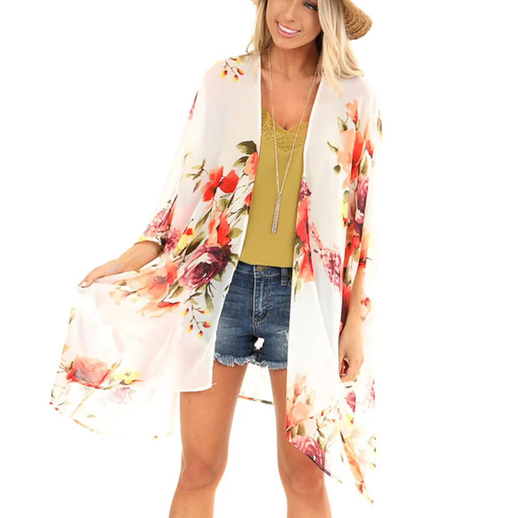 Стиль: идеально подходит как уличная одежда, пляжная одежда, одежда для отдыха, повседневное кимоно, Пляжный купальный костюм накидка, модная шифоновая блузка, сексуальный пляжный чехол Топ, тонкое пальто на весну, лето, осень и т. д. Универсальный гардероб Штапель как для жарких дней на улице, так и для холодного кондиционирования воздуха в помещении