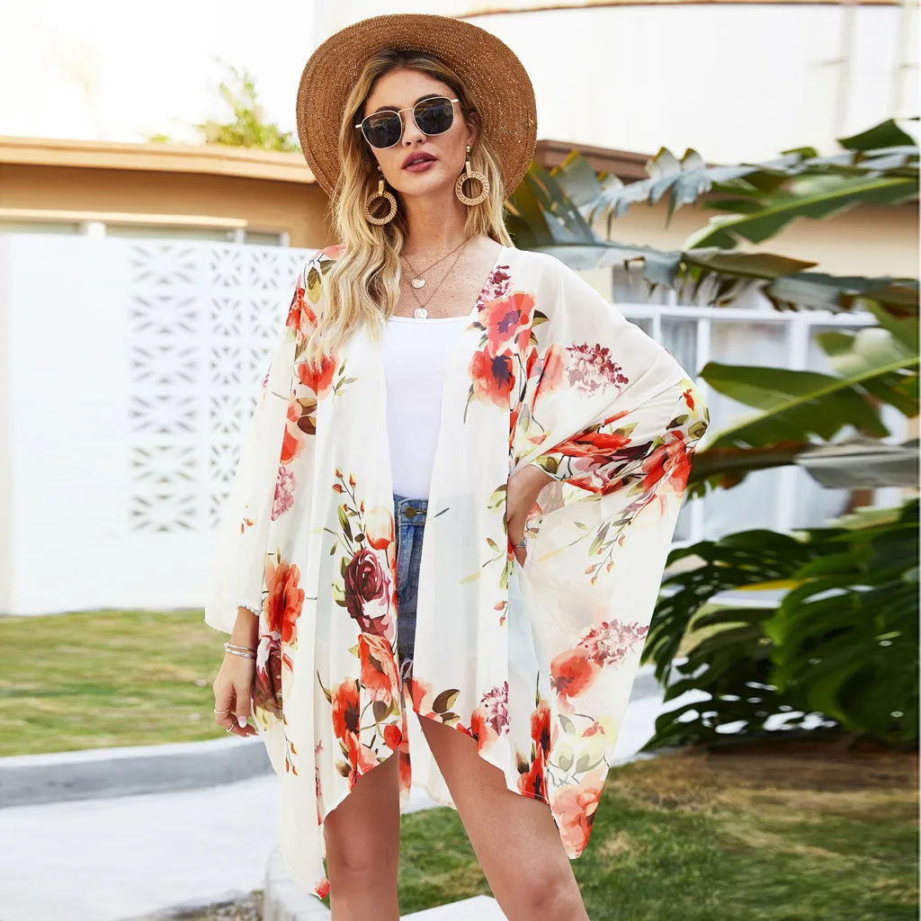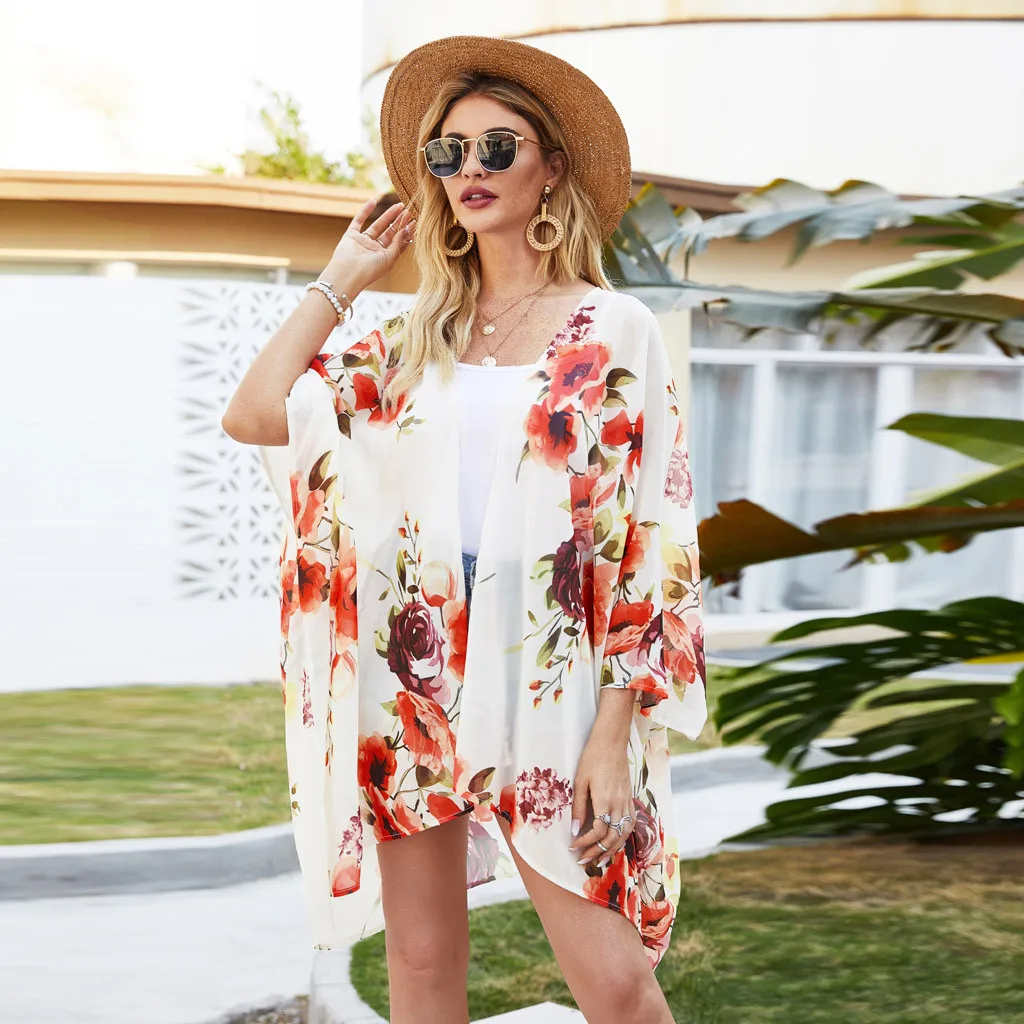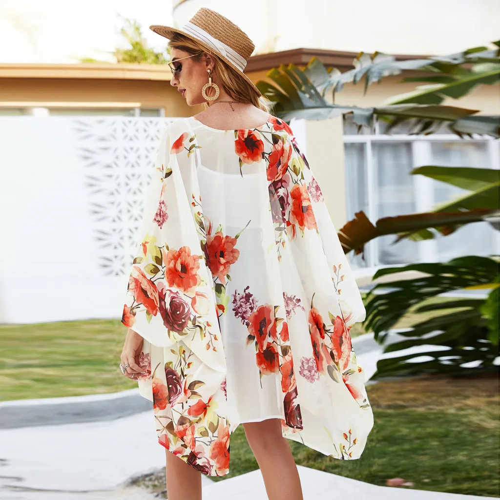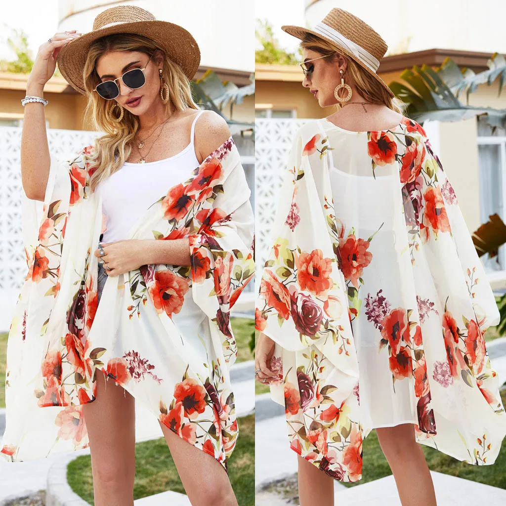 Стиль: идеально подходит как уличная одежда, пляжная одежда, одежда для отдыха, повседневное кимоно, Пляжный купальный костюм накидка, модная шифоновая блузка, сексуальный пляжный чехол Топ, тонкое пальто на весну, лето, осень и т. д. Универсальный гардероб Штапель как для жарких дней на улице, так и для холодного кондиционирования воздуха в помещении