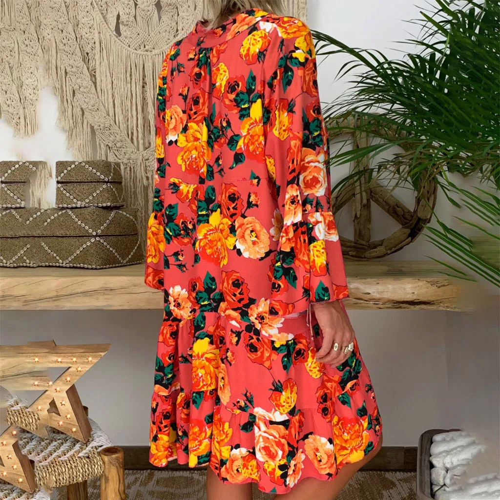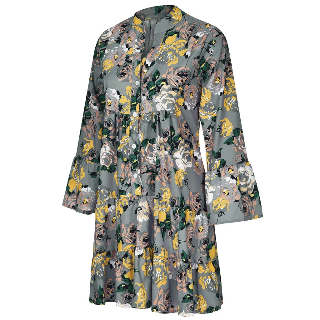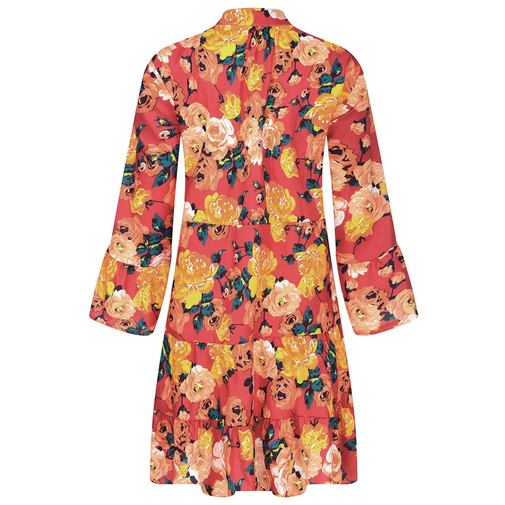 Женское свободное мини-платье с рукавом 3/4, летнее платье с принтом