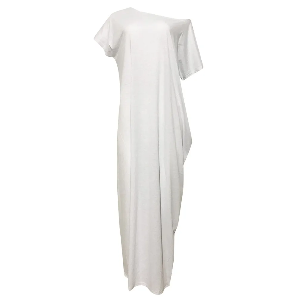 Женское летнее сексуальное повседневное однотонное богемное пляжное платье с открытыми плечами, повседневное праздничное длинное платье