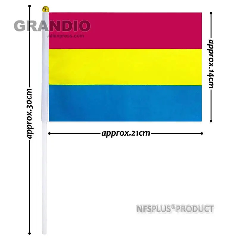 Бренд NFS PLUS® Товар включает в себя 10 флагов и 10 флагшток Флаг Материал: полиэстер Размер: approx.14x21cm Флагшток Материал: пластиковая трубка Размер: около L30cmxD0.5cm Цвет: белая трубка с золотым верхом Дизайн ЛГБТ/Би/танgender/пансекал Посылка Полиэтиленовый пакет Уведомление 1. Пожалуйста, учитывайте некоторую разницу в цвете и погрешность в размере. 2. Возможна индивидуальная печать, пожалуйста, свяжитесь с нами с изображением.