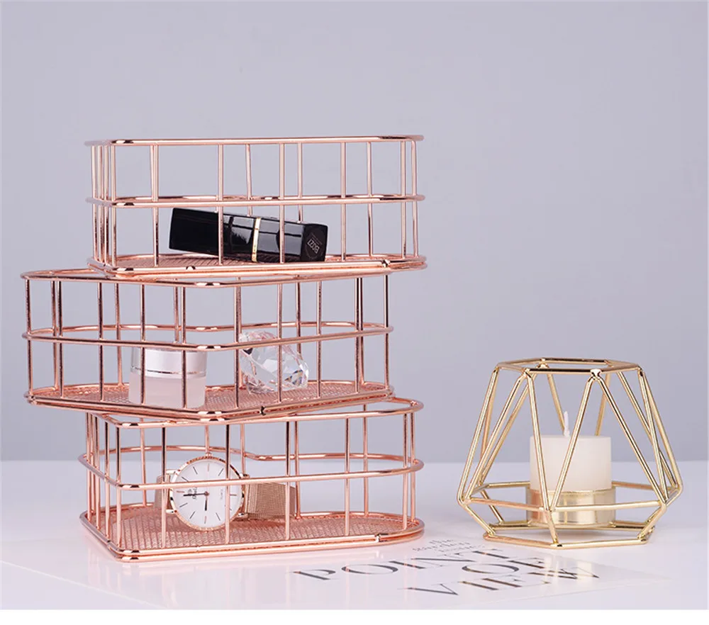 Корзина для хранения ювелирных изделий из золотистого металла, корзина для хранения косметики, скандинавский сортировочный Органайзер в форме сердца, Настольная корзина, коробка для мелочей