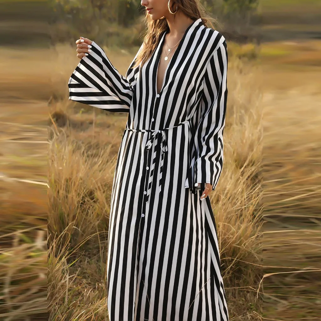 Весенне-летнее Свободное длинное платье-рубашка в полоску.
