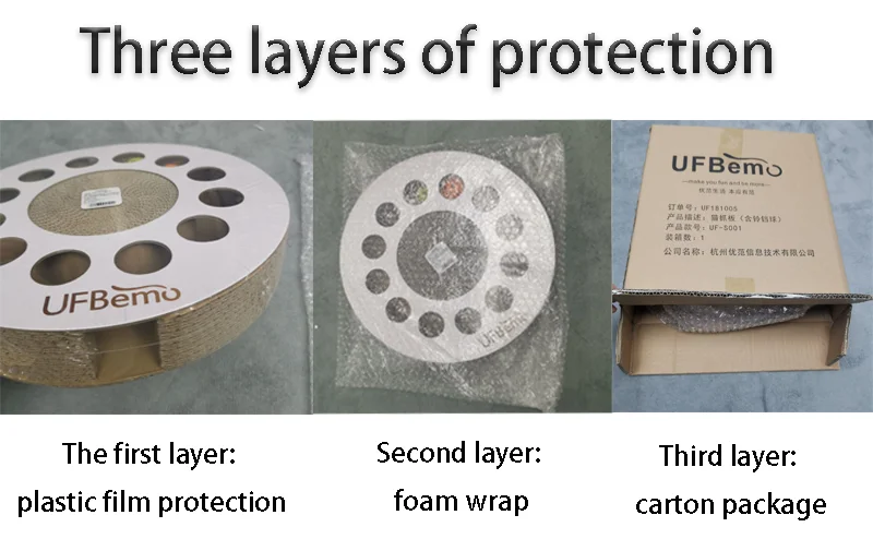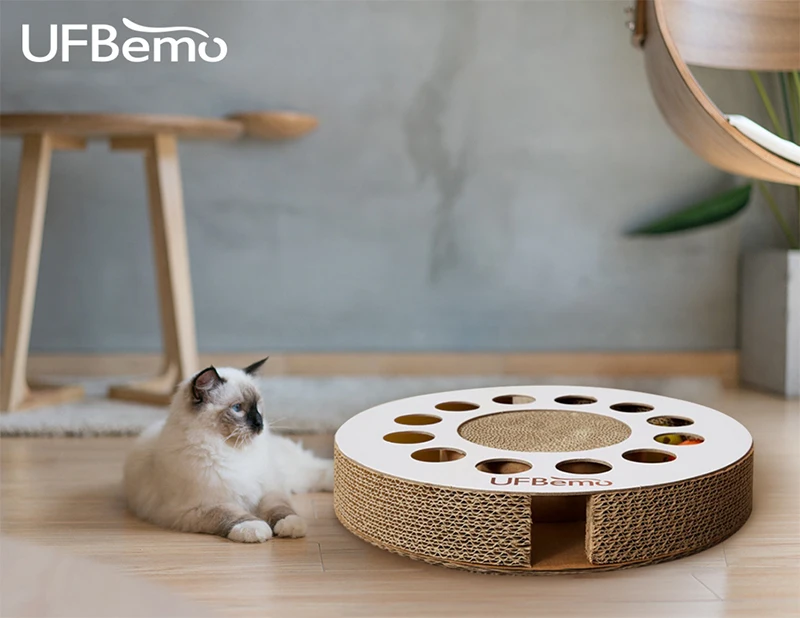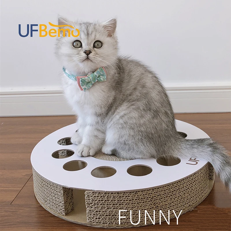 Уникальный кольцевой канал сочетается с колокольчиком. В дополнение к шлифовке когтей для большего удовольствия, круглая платформа для отдыха может использоваться в качестве кошачьей кровати для отдыха. Четыре отверстия сбоку могут вызвать интерес кошки.