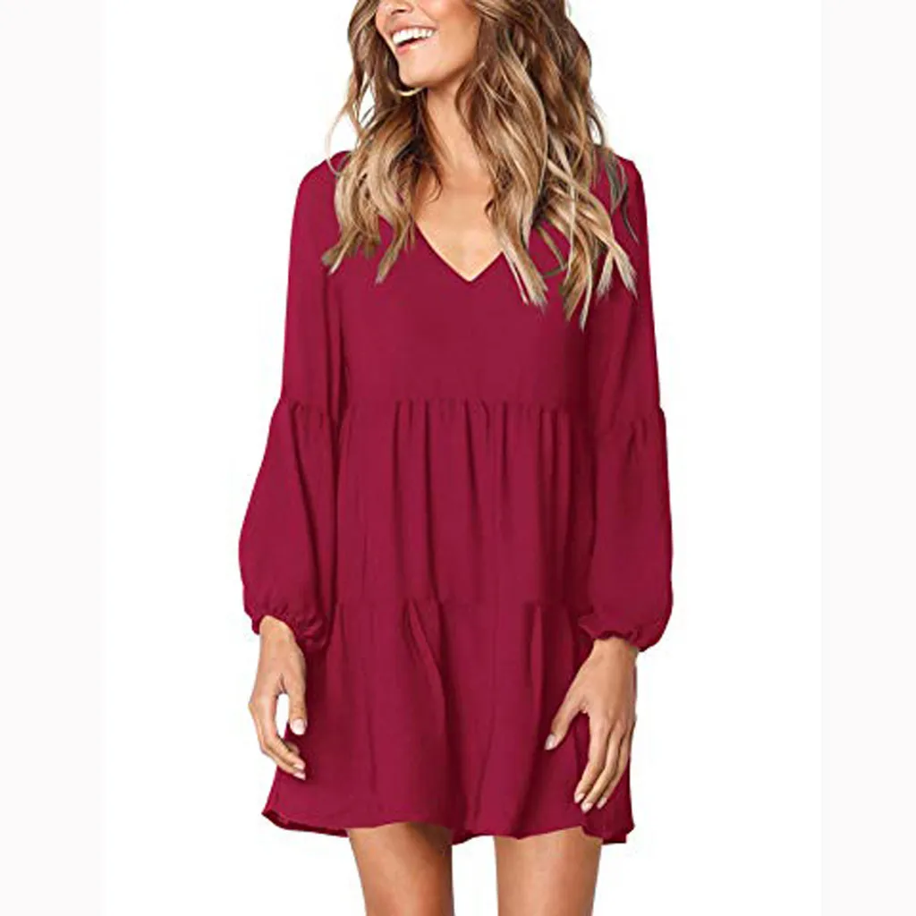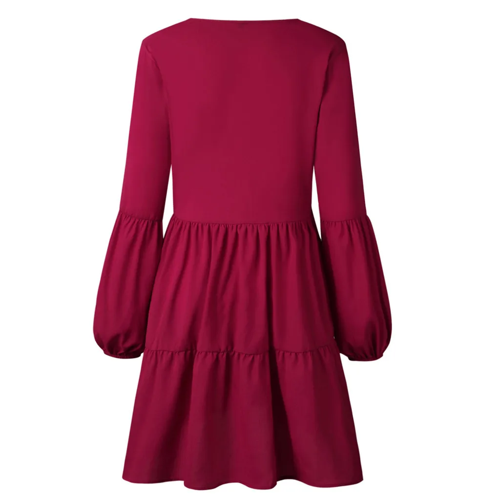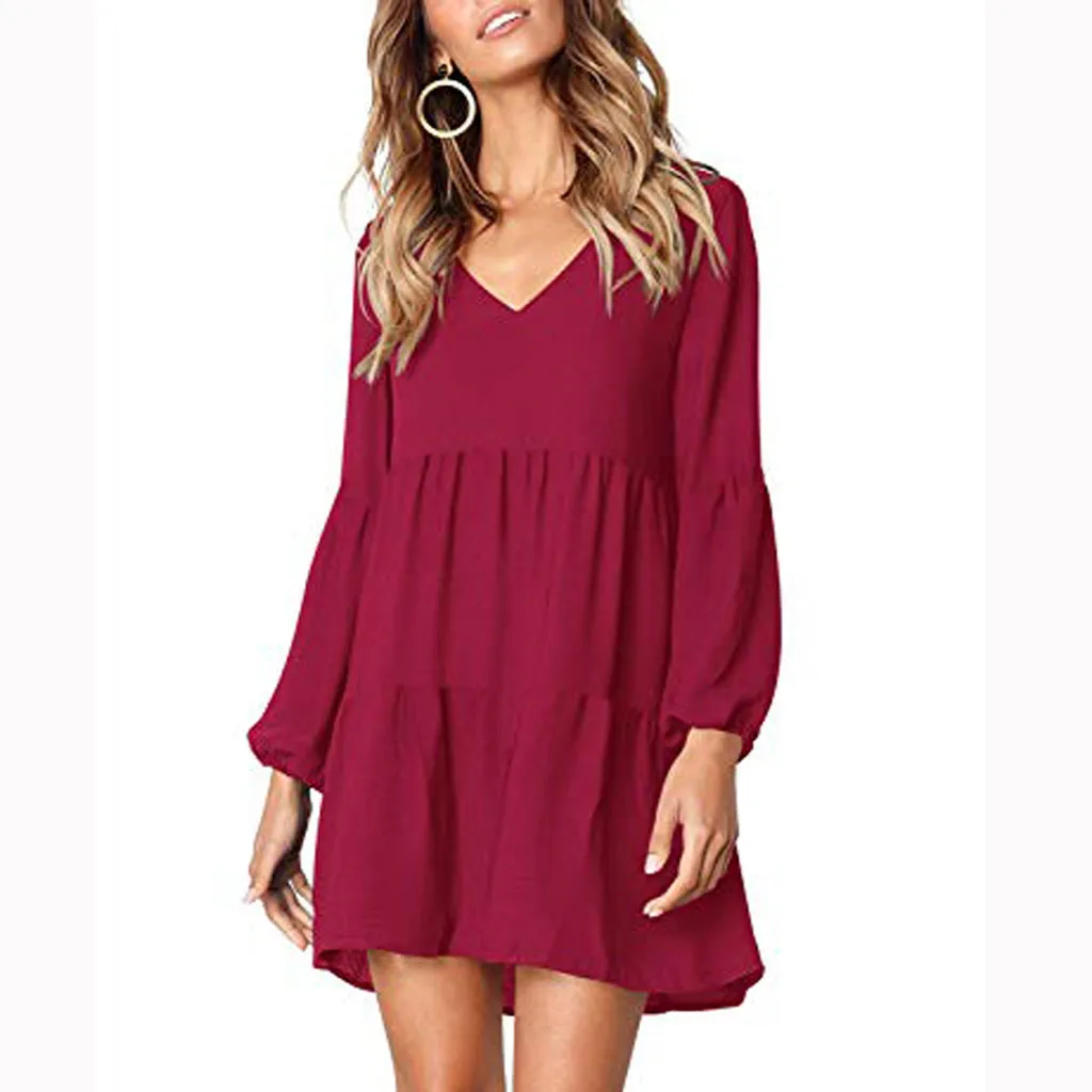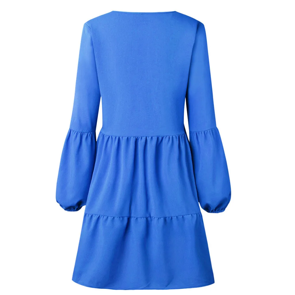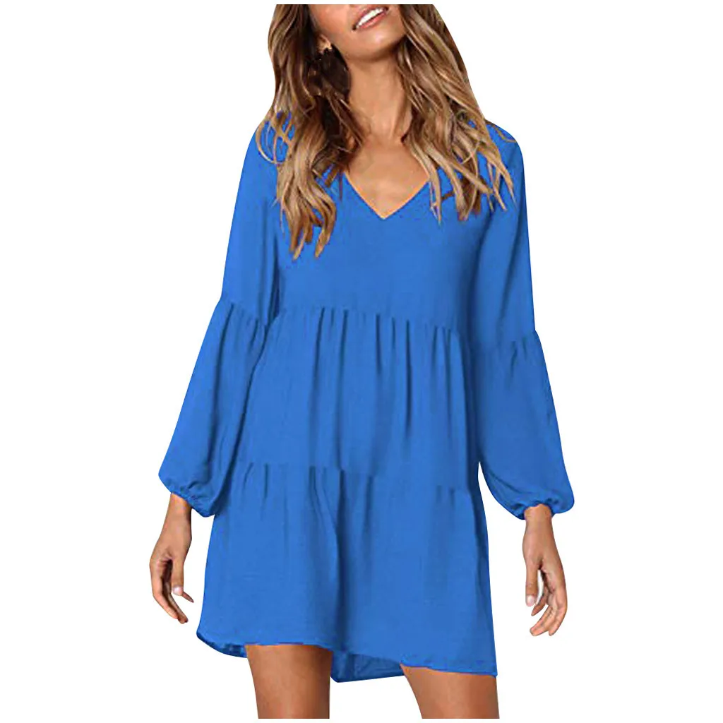 Модное женское однотонное платье-рубашка с длинным рукавом и v-образным вырезом