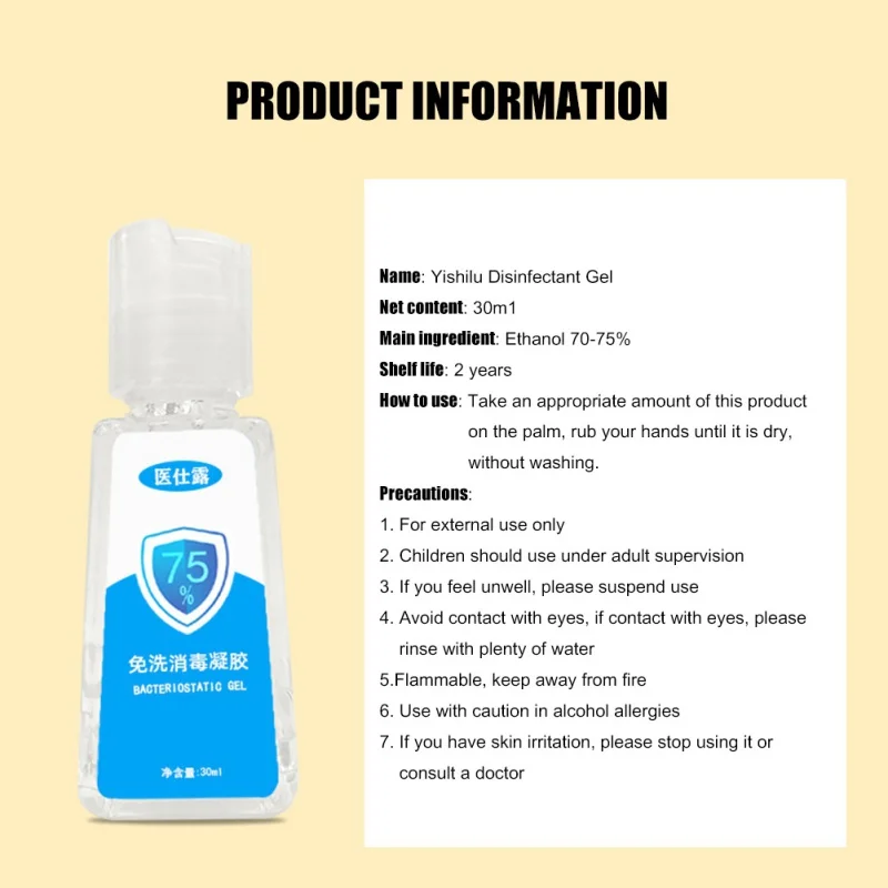 Характеристики: Содержание нетто: 30 мл Способ использования: Возьмите соответствующее количество (2-3 мл) продукта, чтобы увлажнить руки и втереть в течение 15 секунд, пока жидкость не закроет руки, подождите, пока высыхнет, И не стирать с водой. Функция: эффективно устраняет большинство патогенных микроорганизмов, таких как E. coli, Staphylococcus aureus и т. д. 1. Может эффективно и быстро убивать микробы, грибы, коцки, вирусы и т. Д. 2. Мягкое и не раздражающее, не повреждает кожу, обладает функцией удержания воды и увлажнения 3. Не стирать с водой, легко экономить воду 4. Маленький размер, легко носить с собой 5. Гелевая текстура, вы можете легко контролировать количество Ингредиенты продукта: дихлорбензиловый спирт, этанол, вода, пропиленгликоль, глицерин, Примечание: Этот продукт предназначен для внешнего использования. Не принимайте его внутри. Используйте с осторожностью для людей с аллергией на алкоголь. Пожалуйста, держите его в недоступном для детей месте. Содержание нетто: 30 мл