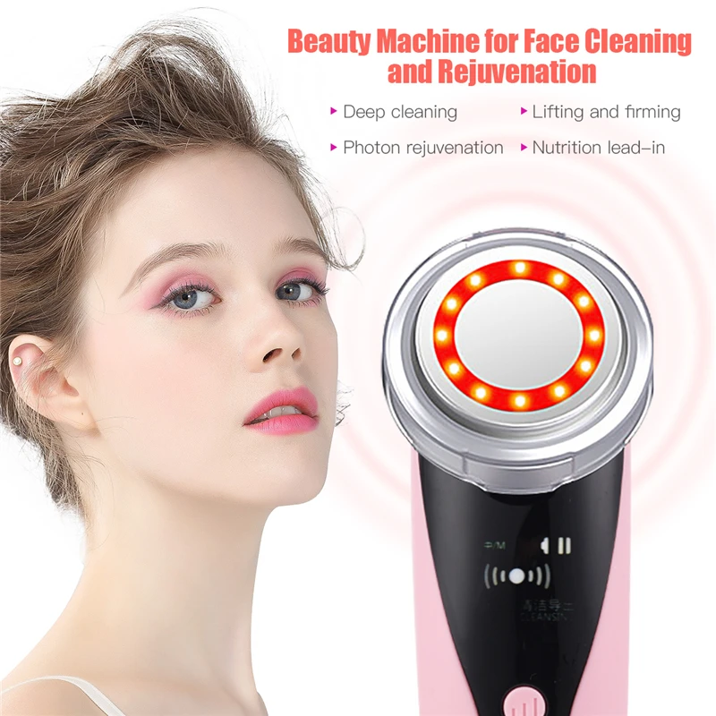 【Модернизированная технология. Это портативная, но Волшебная машина, сочетающая в себе Ион и анион, теплое тепло, микровибрацию и синий и красный свет, который может комплексно улучшить состояние кожи.
