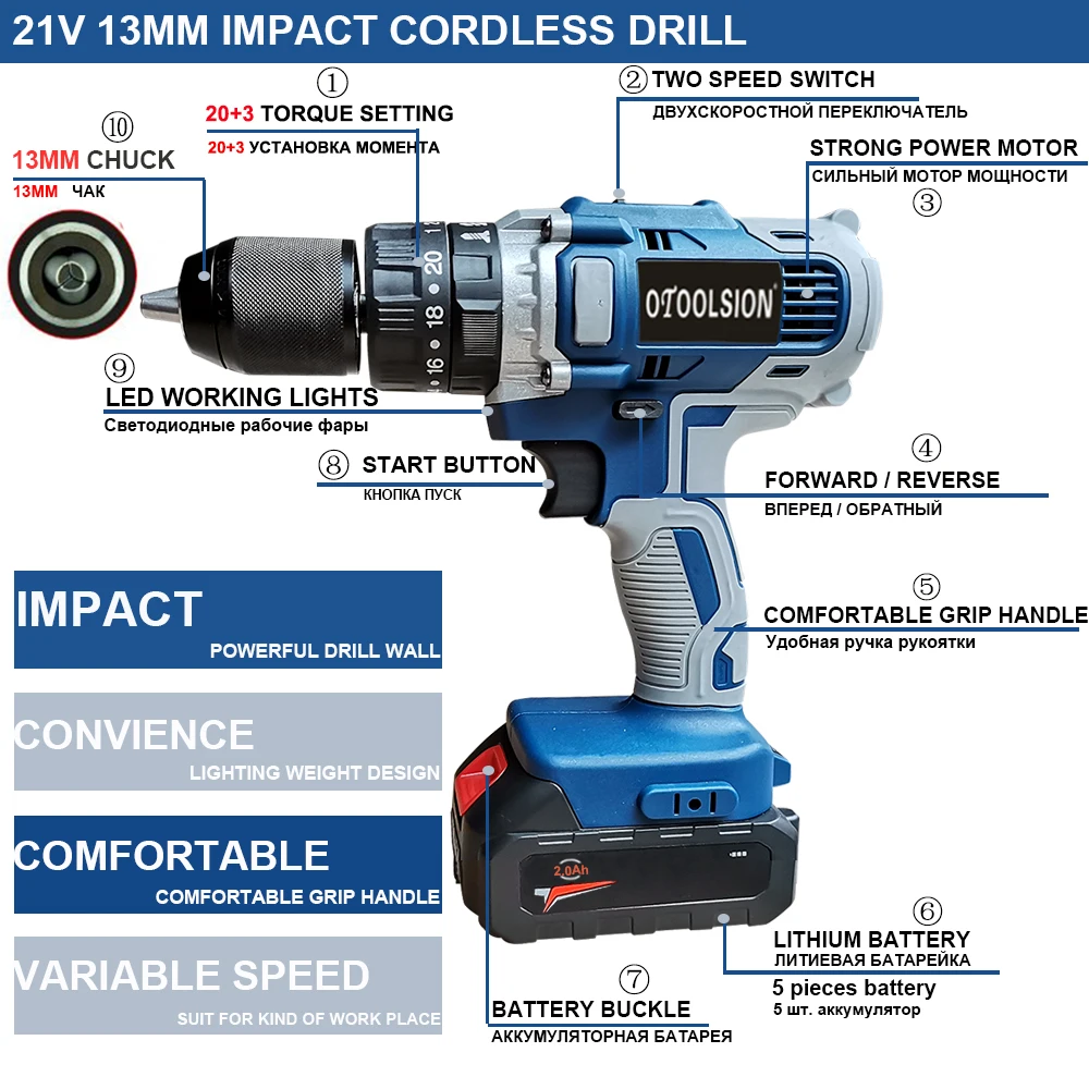 21 в Ударная дрель специальная особенность: