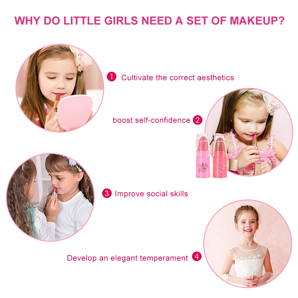 * 3. Безопасный и моющийся: этот детский моющийся набор для макияжа был протестирован на безопасность, нетоксичные, на водной основе материалы и мягкие для кожи. Детский игровой набор для макияжа легко моется с мылом и теплой водой.