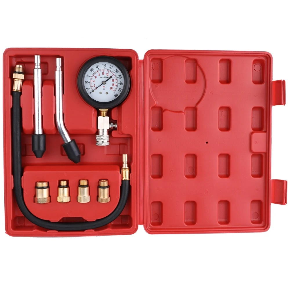 Этот автомобильный тестер Сжатия Работает с большинством моделей автомобилей с бензиновыми двигателями. Он поставляется с адаптерами и трубами разных размеров для разных моделей. Широко используется для быстрой и точной проверки сжатия на цилиндре двигателя.