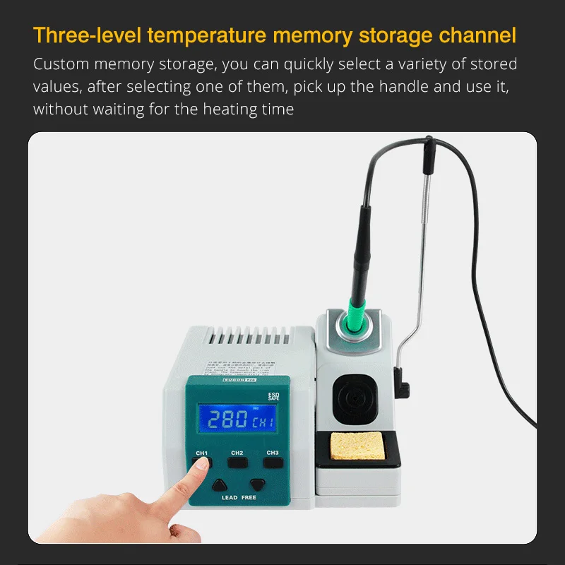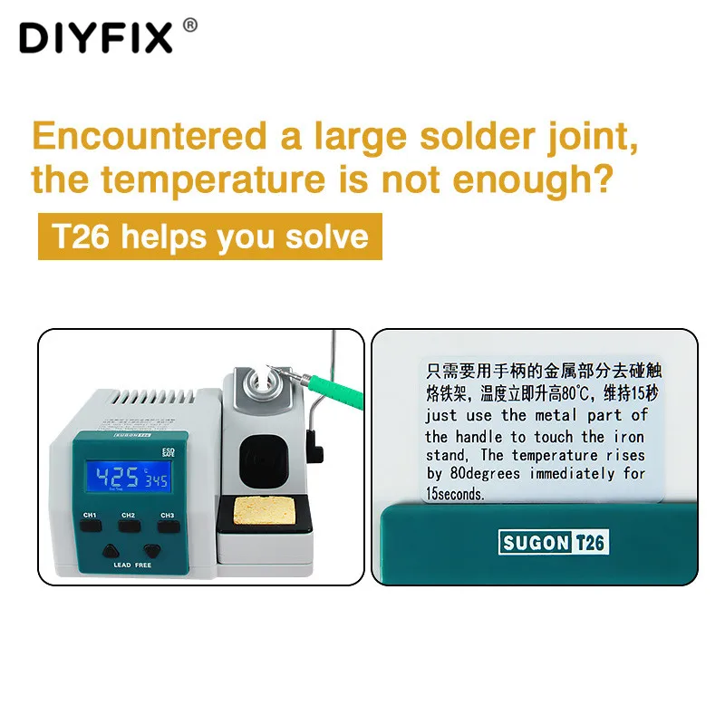 Модель: SUGON-T-26 Потребляемая мощность: 100 Вт Напряжение устройства: ac220в Предохранитель: 2А Диапазон температур: зависит от режима работы (200 °-500 °) Максимальная температура окружающей среды: 40 ° Устойчивость к заземлению: <1Ω(DC) От наконечника до заземления напряжение: <25 мВ (True RMS)