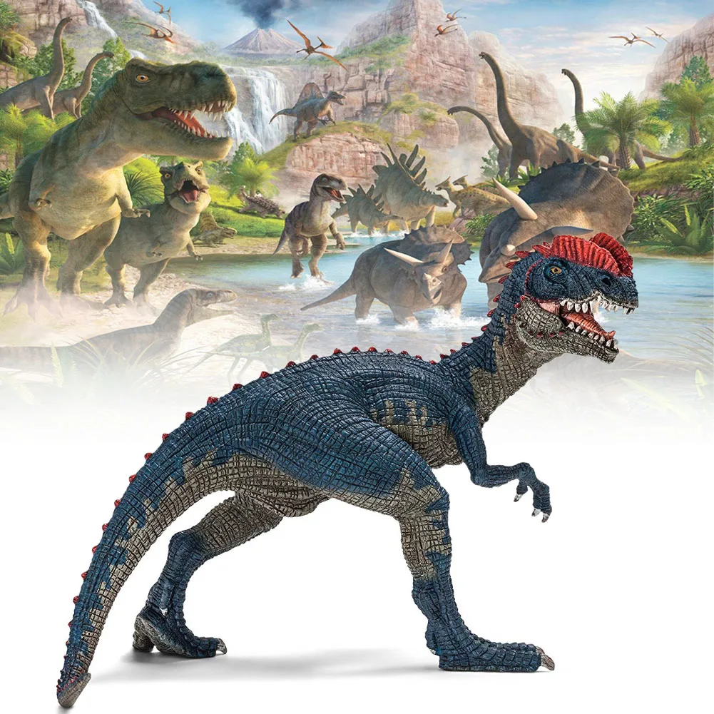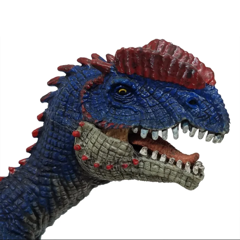 После компсогната и Велоцираптора дилофозавр был одним из самых быстрых ящериц в истории. Несмотря на высоту 6 метров и вес всего 500 кг, ноги длинные и мощные, что позволяет легко достичь скорости 38 километров в час. На черепе есть два ярких костного гребня, что делает его известным как двукоронная ящерица. Они большие и длинные, но слишком тонкие, чтобы защитить себя. Ученые думают, что они привыкли произвести впечатление на своих конкурентов.