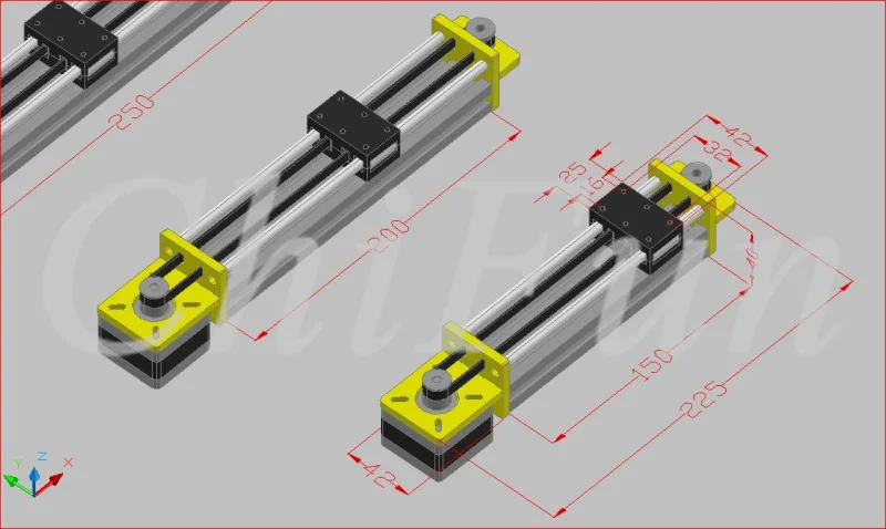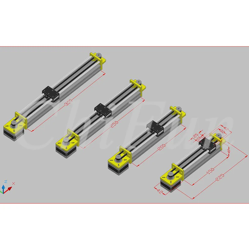 Эффективный ход: 150 мм, 200 мм, 250 мм, 300 мм по желанию. Общая длина скользящего стола: (эффективный ход + 75 мм) * 42 мм * 40 мм (длина * ширина * высота без двигателя). Тип двигателя: 39 или 42 (36 ~ 42 шаговые двигатели могут быть выбраны для монтажных отверстий). Напряжение вождения: 5-12 В/500mA-2A. Размер двигателя: 42*42*25 мм. Угол шага: 1,8 °.