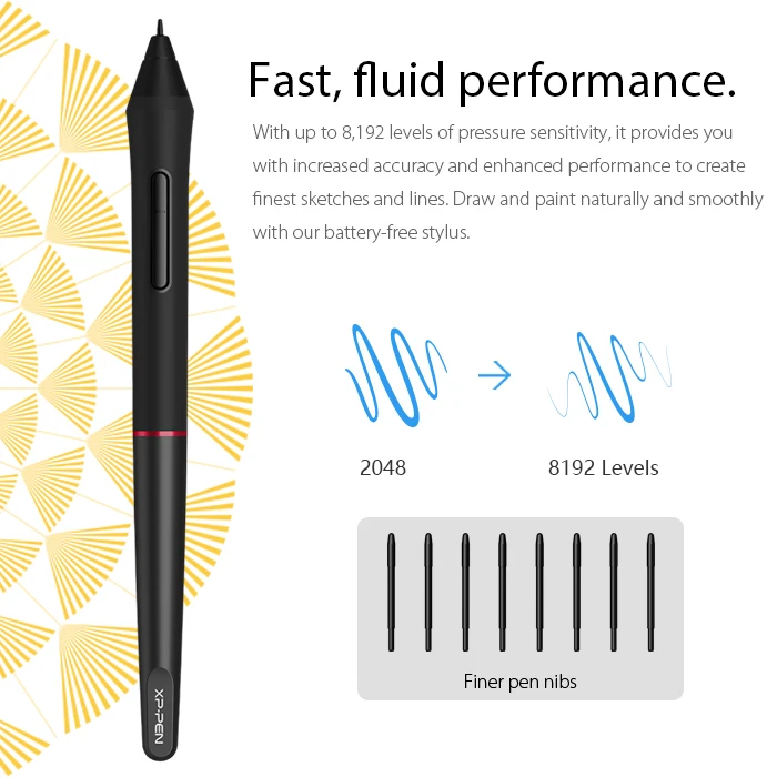 С 8192 уровнями чувствительности к давлению, он обеспечивает вам повышенную точность и улучшенную производительность, чтобы создать лучшие эскизы и линии, даже представляя нюанс различных волосков. Рисовать и рисовать естественно и плавно с нашим стилусом без батареи.