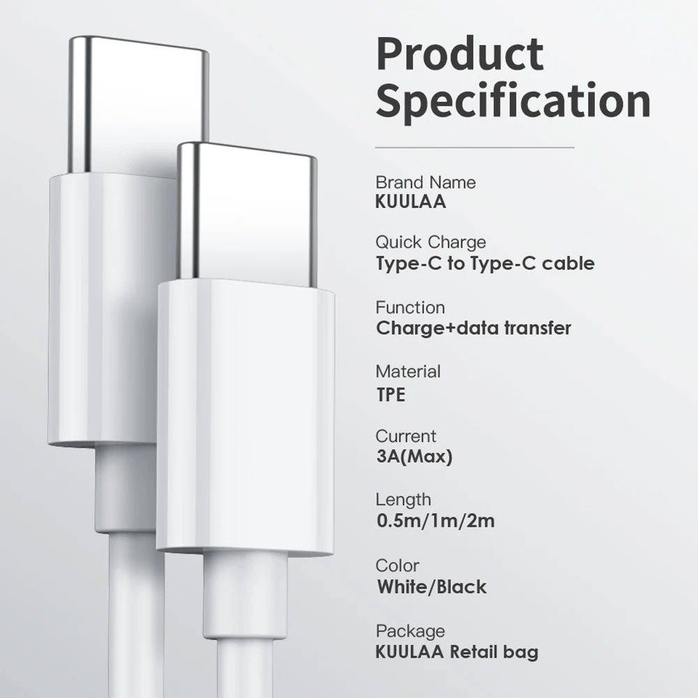 KUULAA-USB Быстрый зарядный кабель для передачи данных Быстрая зарядка 60 Вт белый кабель для передачи данных тип-c папа-папа PD Быстрая зарядка кабель Поддержка оптовая продажа 30