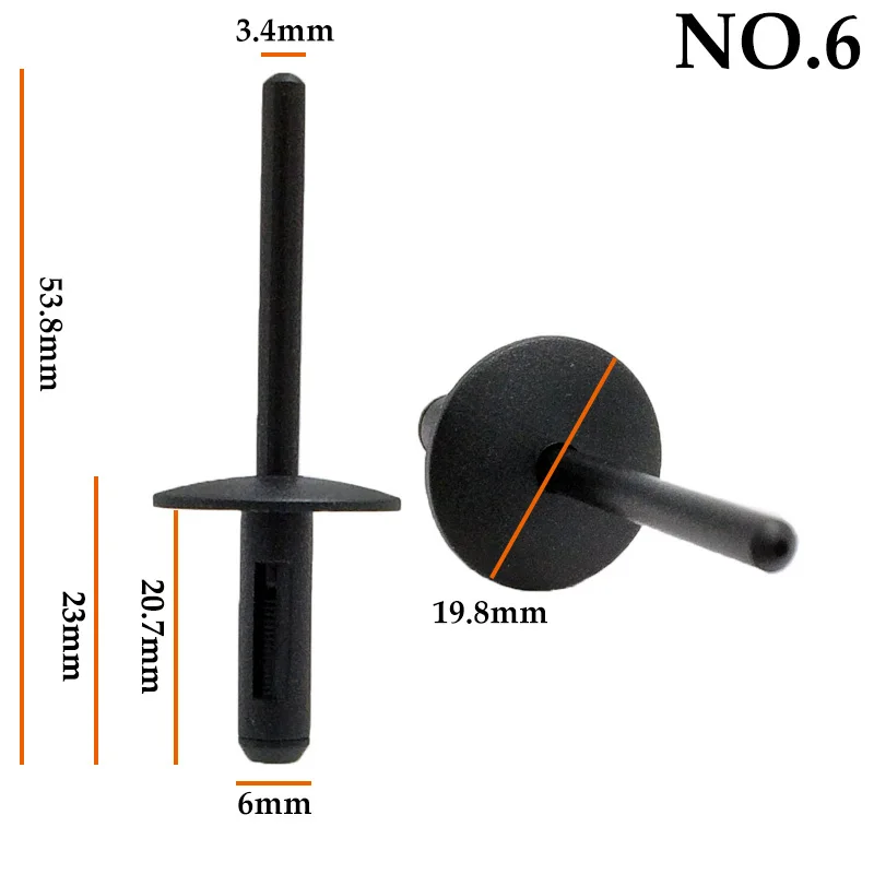 10 шт., автомобильные колеса, арки, расширяющиеся, заклепки, брызговики, брызговики, щитки, крыло, вкладыш, фиксатор, защелки, слепые заклепки для BMW Ford Chrysler Jeep Dodge GM, транспортные средства Хорошо изготовлено из высококачественного нейлонового пластика, что эквивалентно качеству OEM. Замените для OEM номер детали: Для GM 14063981, для Ford N803043-S, для Chrysler 6500911, для Jeep 06500911 Широко используется для автомобиля колеса арки, крыло лайнер, брызговики замены. Посылка: 10 шт. нейлоновый пластиковый слепой фиксатор заклепок