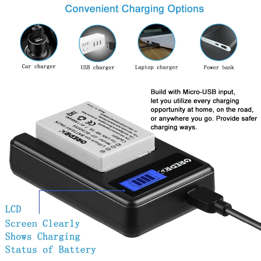 ◆1/ 2/ 3/ 4x NB-10L Батарея◆1x зарядное устройство USB с ЖК-дисплеем◆1x USB кабельПлатежи: