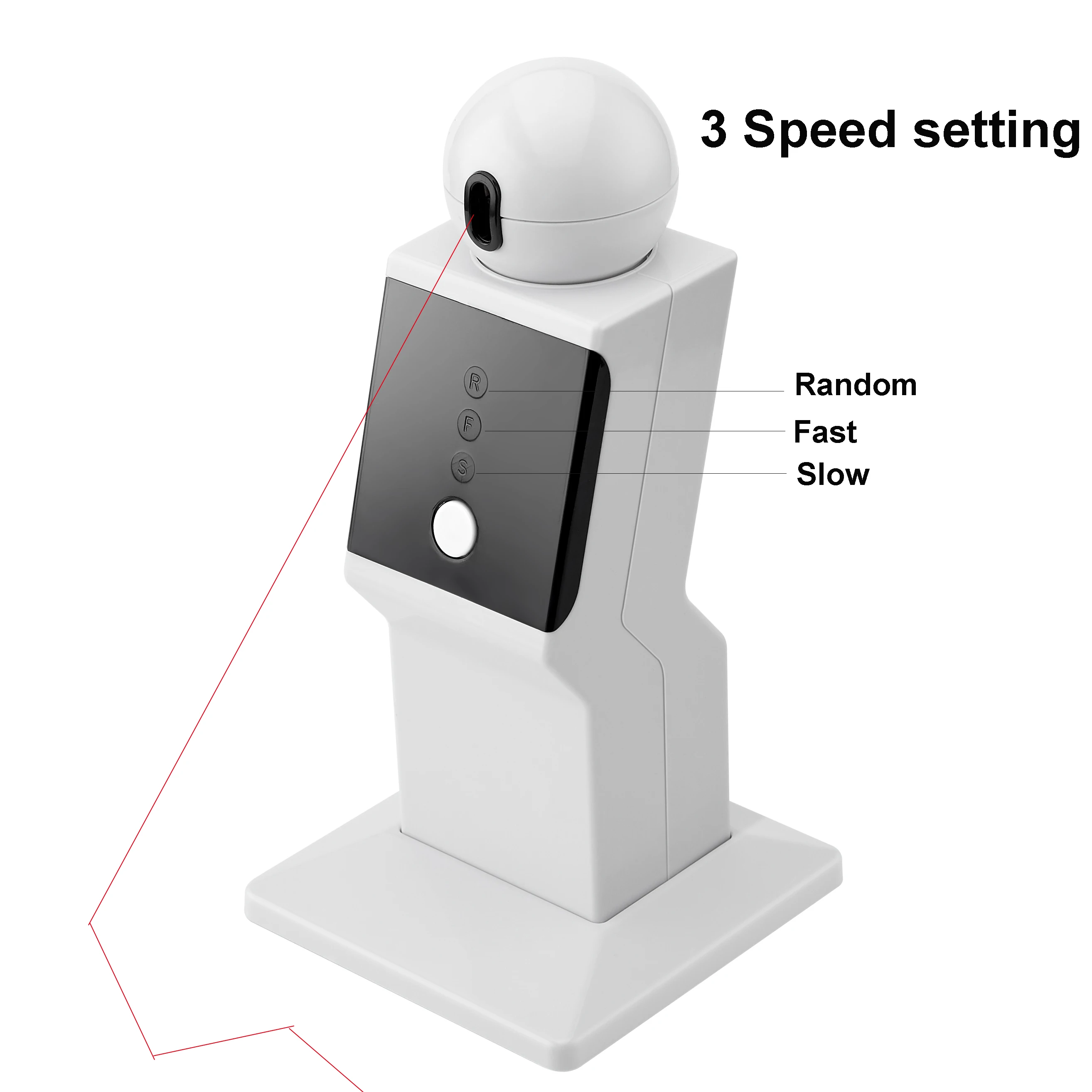Большая игровая зона: луч lazer находится на 360 градусов вокруг него, точка lazer будет рядом и далеко случайным образом, который так кошка никогда не узнает правила и не будет скучать и может играть долгое время.
