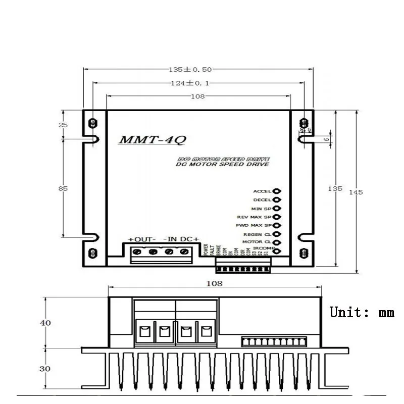 Входное напряжение широкого диапазона DC48V Максимальный выходной ток 100A Режим работы Режим скорости, режим крутящего момента, четырехскоростной режим, регенеративный режим Управление пути ШИМ, 0-5 В, потенциометр Защита Аномальный ток, перегрев, перенапряжение, меньшее напряжение и короткое замыкание запустят функцию защиты. Температура защиты Когда температура 70, контроллер уменьшит выход из-за защиты от перегрева и остановит выход. Рабочая Температура -10 -- + 60 Влажность окружающего воздуха Относительная влажность менее 80RH Размеры Д * Ш * В = 134*135*70 мм Вес 1200 г