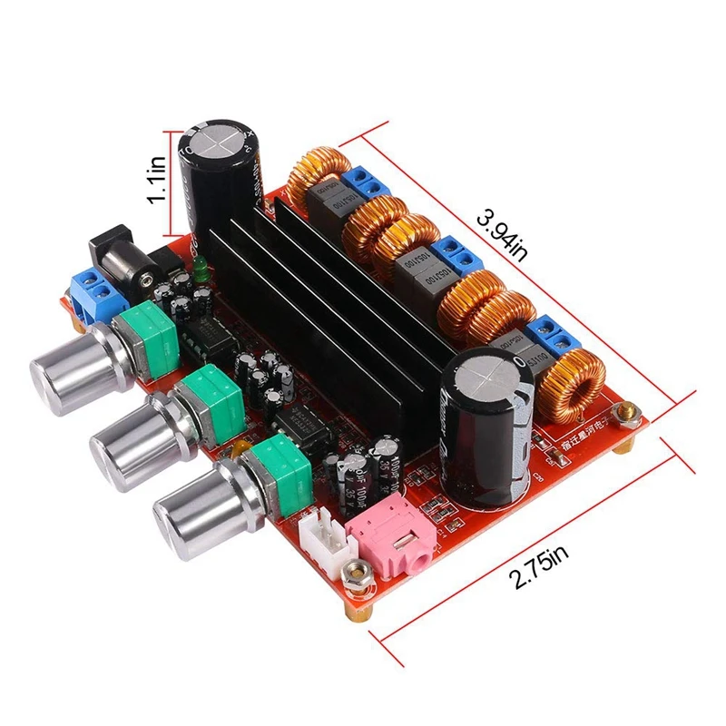 Плата усилителя использует два импортированных TPA3116D2 цифрового усилителя в качестве ядра, один кусок в качестве левого и правого канала усилителя мощности, другой кусок в качестве предварительного моста драйвера с сабвуфером NE5532, с небольшой, высокой эффективностью, высокая мощность характеристики.