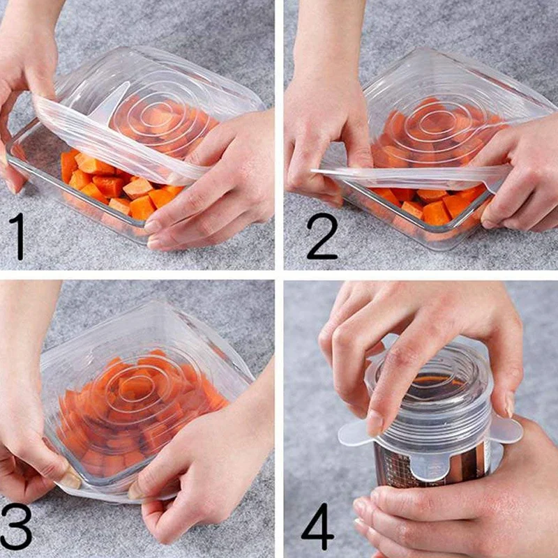Крышки для упаковки пищевых продуктов подходят для всех видов контейнеров для хранения пищевых продуктов, моющиеся, а также легко чистятся. Посудомоечная машина безопасна, но Избегайте использования абразивных или поролоновых очистителей. Многоразовые и не нужно многократно приобретать дорогую пластиковую пленку.