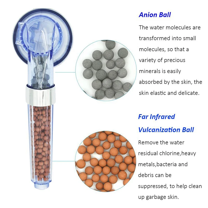 3 режима распыления Три эффектных эффекта можно регулировать для расслабляющего душа. Отрицательный ионный активированный керамический шар Мяч отрицательных ионов удаляет хлор, минерализованные шарики дальнего инфракрасного диапазона и антибактериальные, удаляет 97% остаточного хлора и тяжелых металлов в воде, очищает воду, улучшает поглощение минеральных питательных веществ, уменьшает секрецию масла, И увеличивает жизнестойкость клеток. Экономия воды, Увеличение давления воды Душевая головка использует лазерную технологию перфорации для экономии воды и повышения давления воды