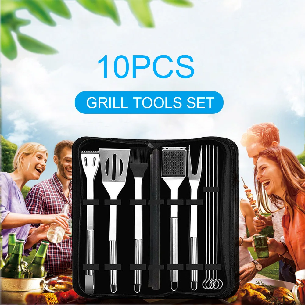 Сверхмощные 10 шт инструменты для барбекю-это лаконичный стиль, термостойкий, прочный, легко чистится, применяется в помещении и на открытом воздухе. В качестве профессиональных аксессуаров для барбекю, этот набор инструментов идеально подходит для гриля, приготовления пищи, выпечки, приготовления салатов и т. Д., который может удовлетворить большинство ваших ежедневных потребностей. Это идеальный подарок для тех, кто любит барбекю или готовку.