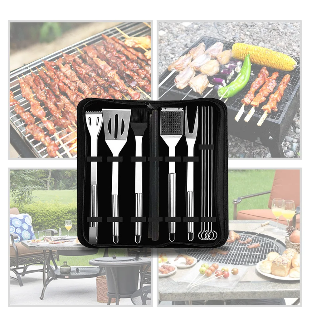 Удобное хранение-использованиеСумка из ткани ОксфордИ убедитесь, что все инструменты аккуратно организованы, вы можете удобно хранить этот набор для гриля. Эта сумка также позволяет легко доставить эти инструменты на пикник, кемпинг, туризм и многое другое.