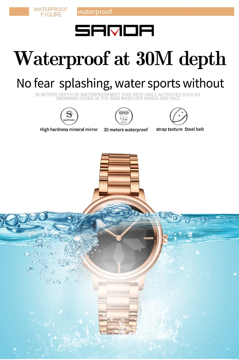 -3 АТМ/30 м водонепроницаемый (поддерживает душ в холодной воде и плавание, не работает с часами под водой, не поддерживает горячую воду);