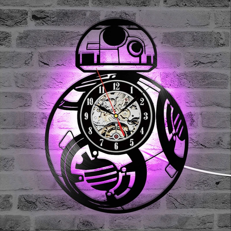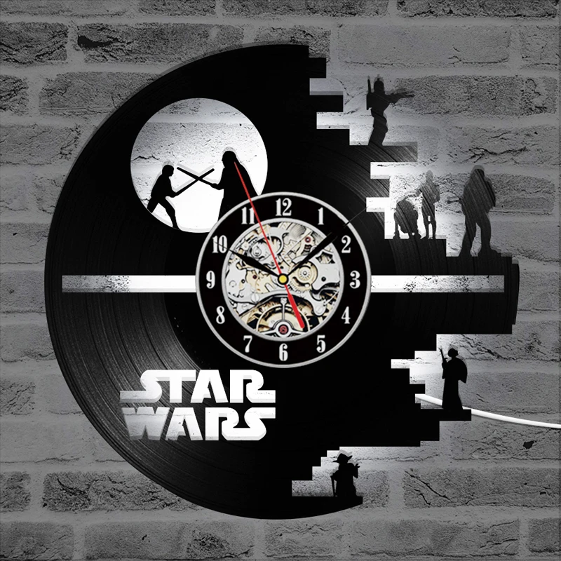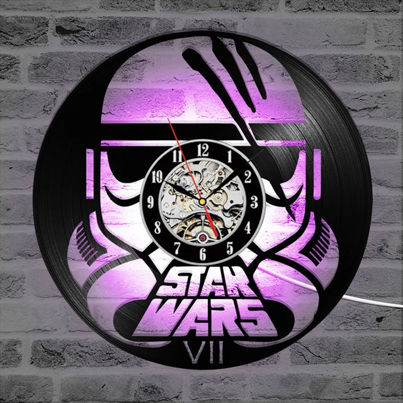 Звездные войны, светодиодные настенные часы, винтажные виниловые часы с 7 разными цветами, современный дизайн, настенные часы, домашний декор