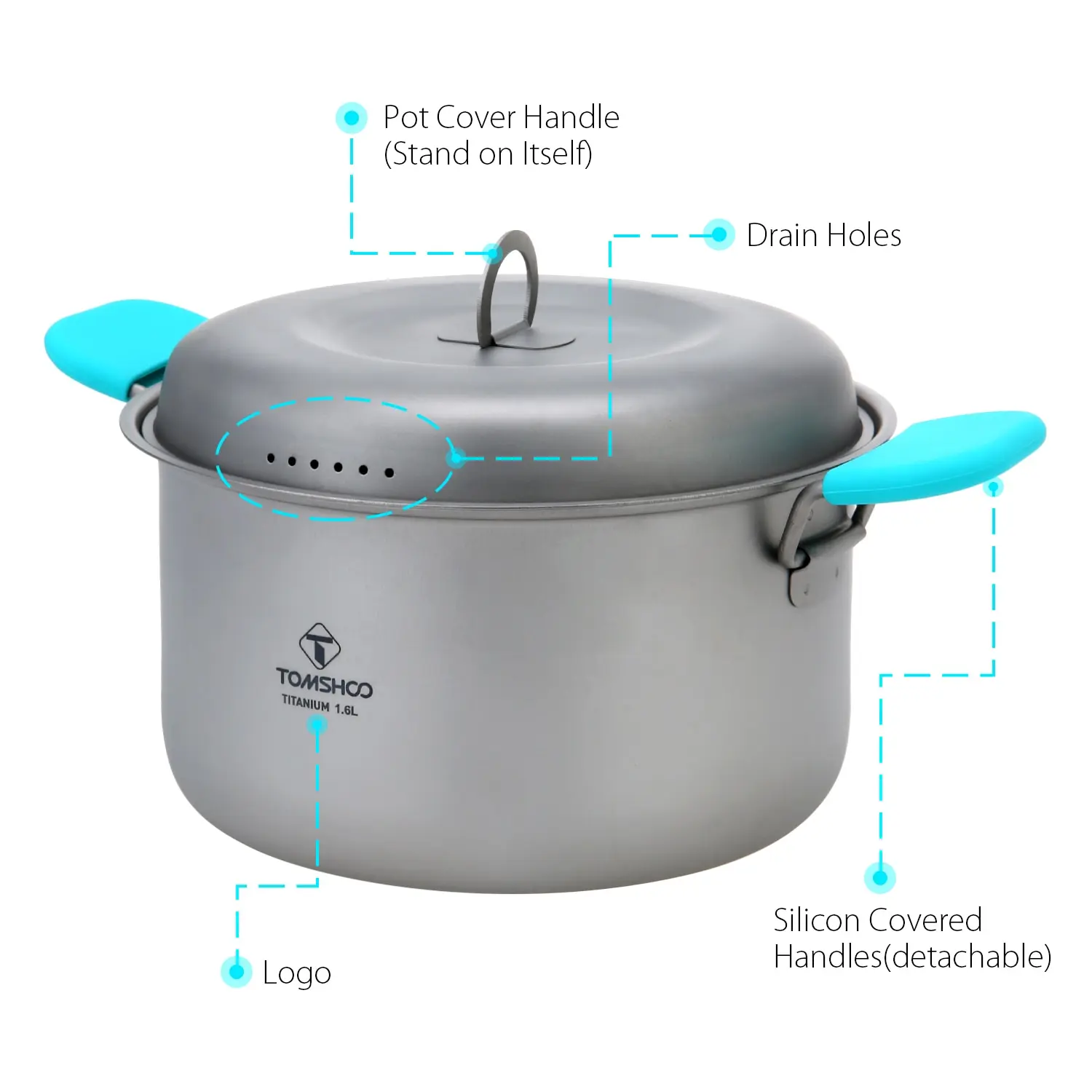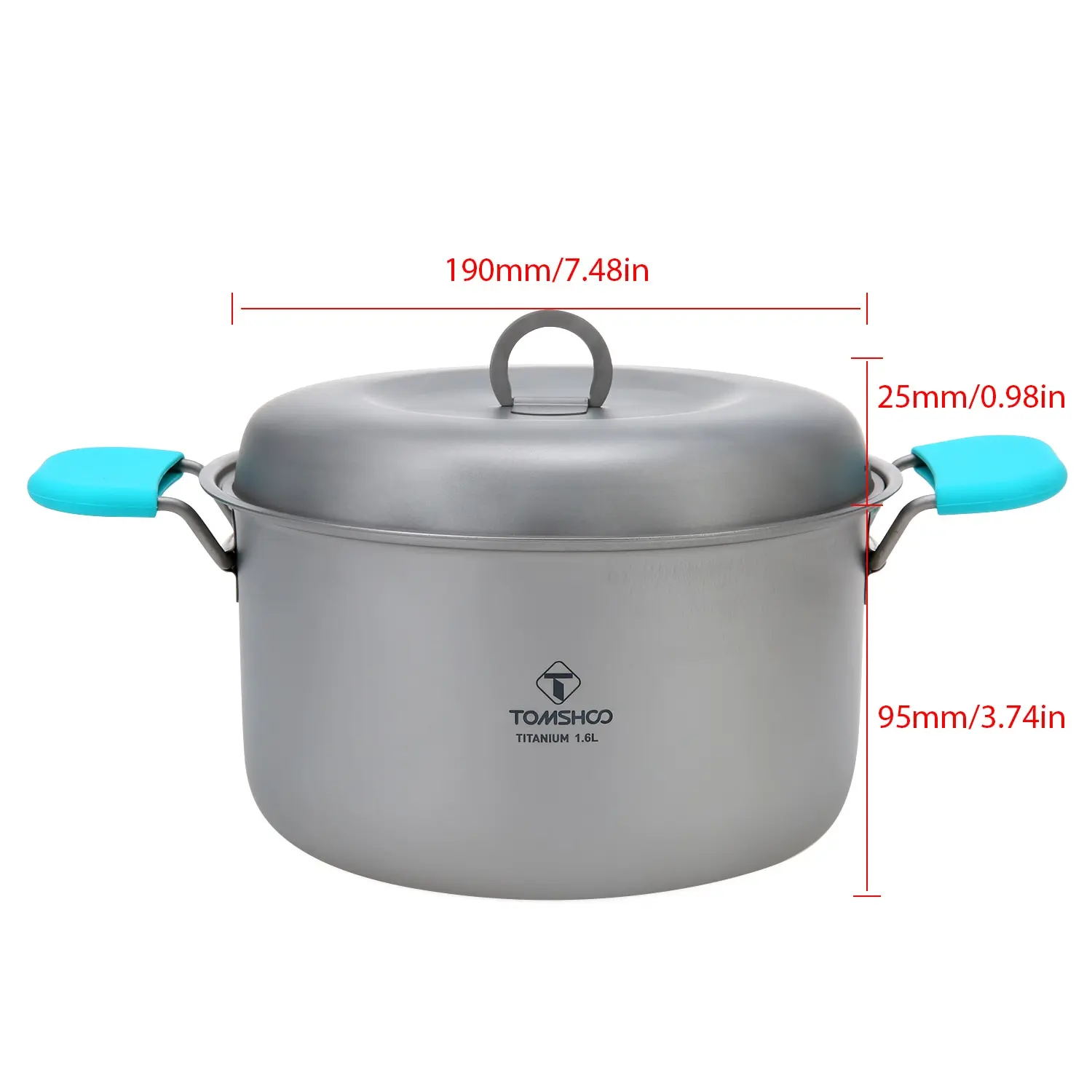Чистый титан: легкий и прочный, чем сталь. Компактный и здоровый: никогда не ржавеет, не подвержен коррозии от кислоты и щелочи. Экологичная и экологичная защита, близкая к человеческому телу. Ручка крышки горшка: Встаньте на себя, гениальный дизайн поможет вам снять крышку безопасно и легко, когда вода кипит. Складные ручки с силиконом: и кастрюля, и кастрюля имеют складные ручки для экономии пространства и компактности. Съемный силикон защищает вас от ожогов и горения, прост в использовании и чистоте. Хорошая теплопередача: Высокая устойчивость к экстремальным низким и высоким температурам. Подходит для различных ситуации Отличное кухонное оборудование для кемпинга, пеших прогулок, альпинизма, пикника и других видов активного отдыха Легкая очистка и хранение Включает в себя 1 кастрюлю и 2 чаши разных размеров, 3 штуки в 1 легко для путешествий и хранения. Помещается вместе (с крышкой на горшке), в нем есть место для хранения соли, перца, губки и многих других мелких вещей, чтобы свести к минимуму общее потребление пространства. Параметры: Торговая марка: TOMSHOO Материал: чистый титан и силикон Поверхность: оригинальный цвет титана Размеры: Кастрюля: (D)200 *(H)40 мм, маленькая чаша: (D)160 *(H)80 мм, большая чаша: (D)190 *(H)95 мм Вес: 770 г/27,2 унций, Кастрюля: 250 г/8,8 унций, маленькая чаша: 10,6 унций/301 г, большая чаша: 319 г/11,2 унций Емкость: Кастрюля: 800 мл, маленькая чаша: 1100 мл, большая чаша: 1600 мл Посылка: 2 * миска, 1 * горшок, 1 * сумка для переноски