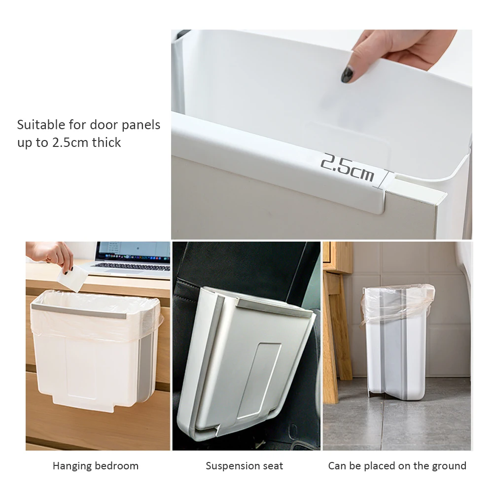 Подвесная корзина для мусора: вы можете повесить мусорную корзину на дверь, шкаф или даже разместить ее на полу. Подходит для кухни, спальни, ванной комнаты, автомобиля и где это необходимо.