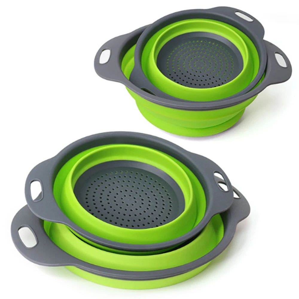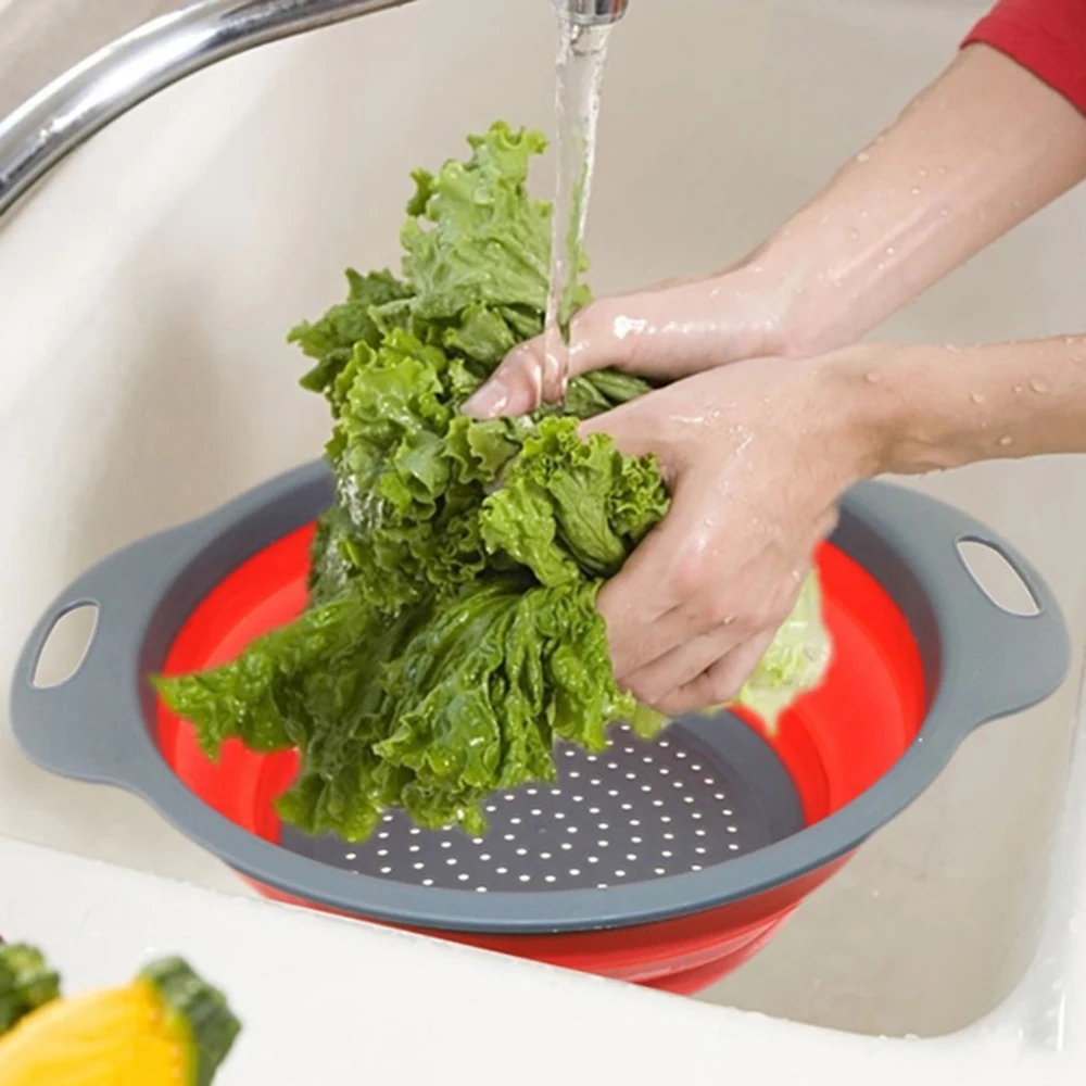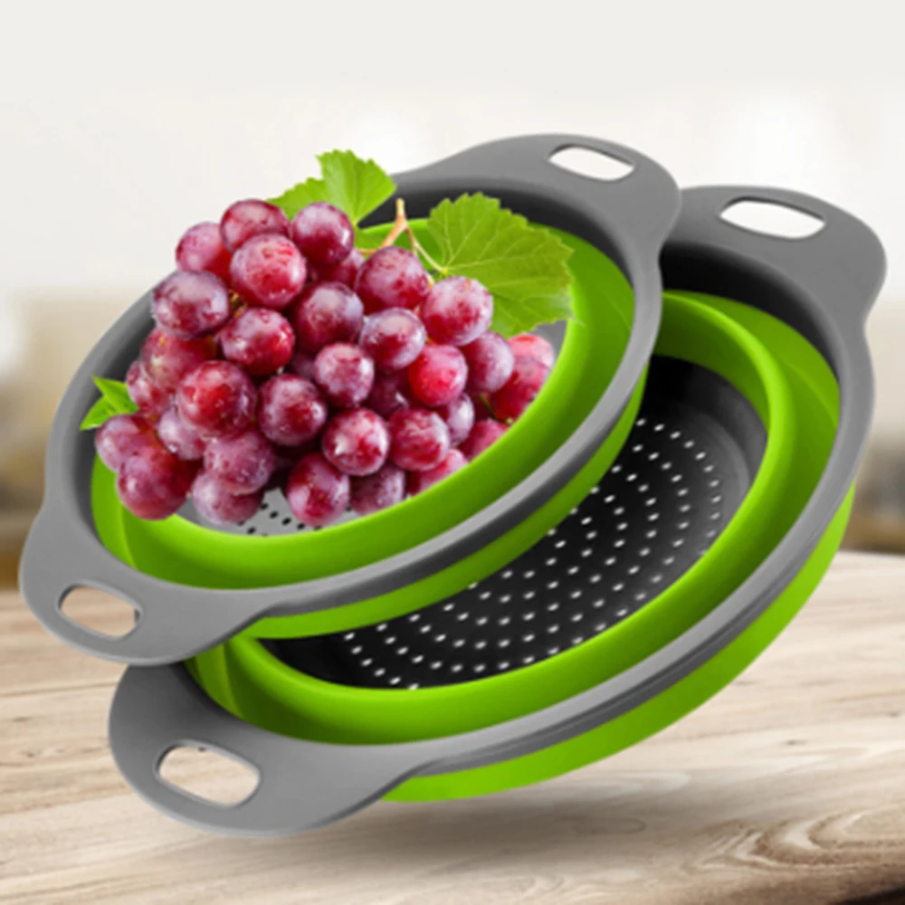 Складная корзина для мытья фруктов и овощей, ситечко, силиконовый дуршлаг, Складная Сушилка с ручкой, кухонные инструменты