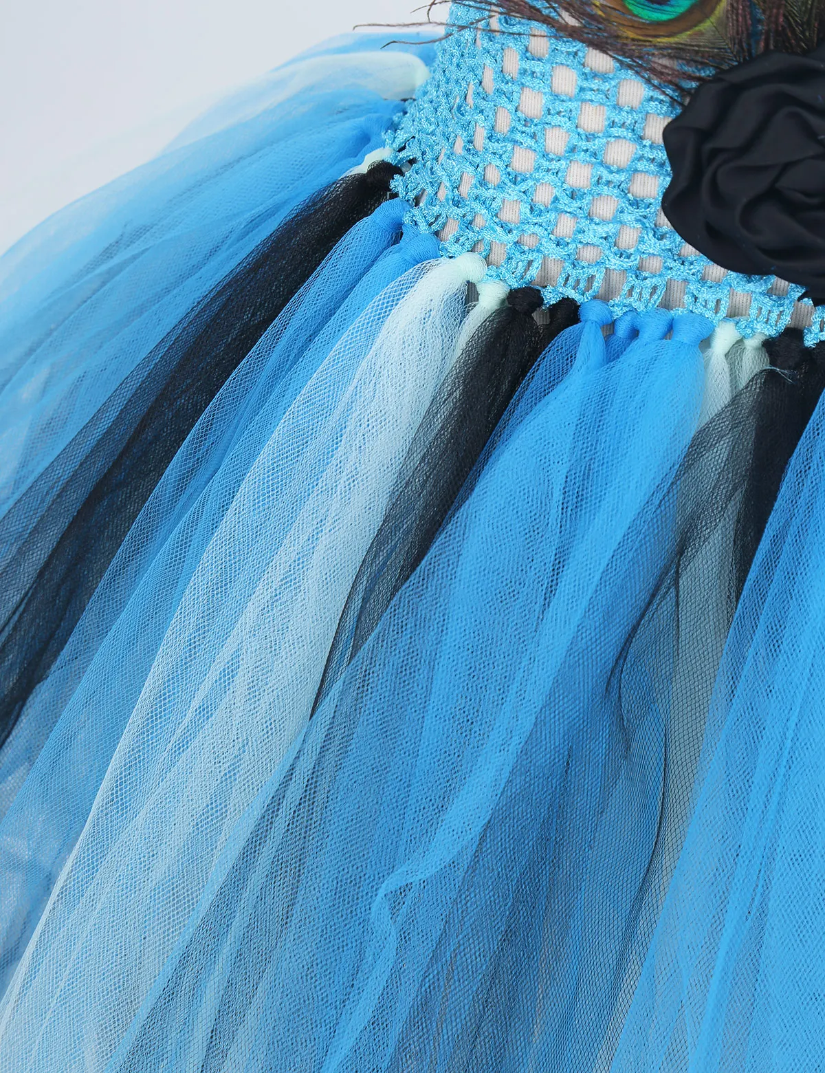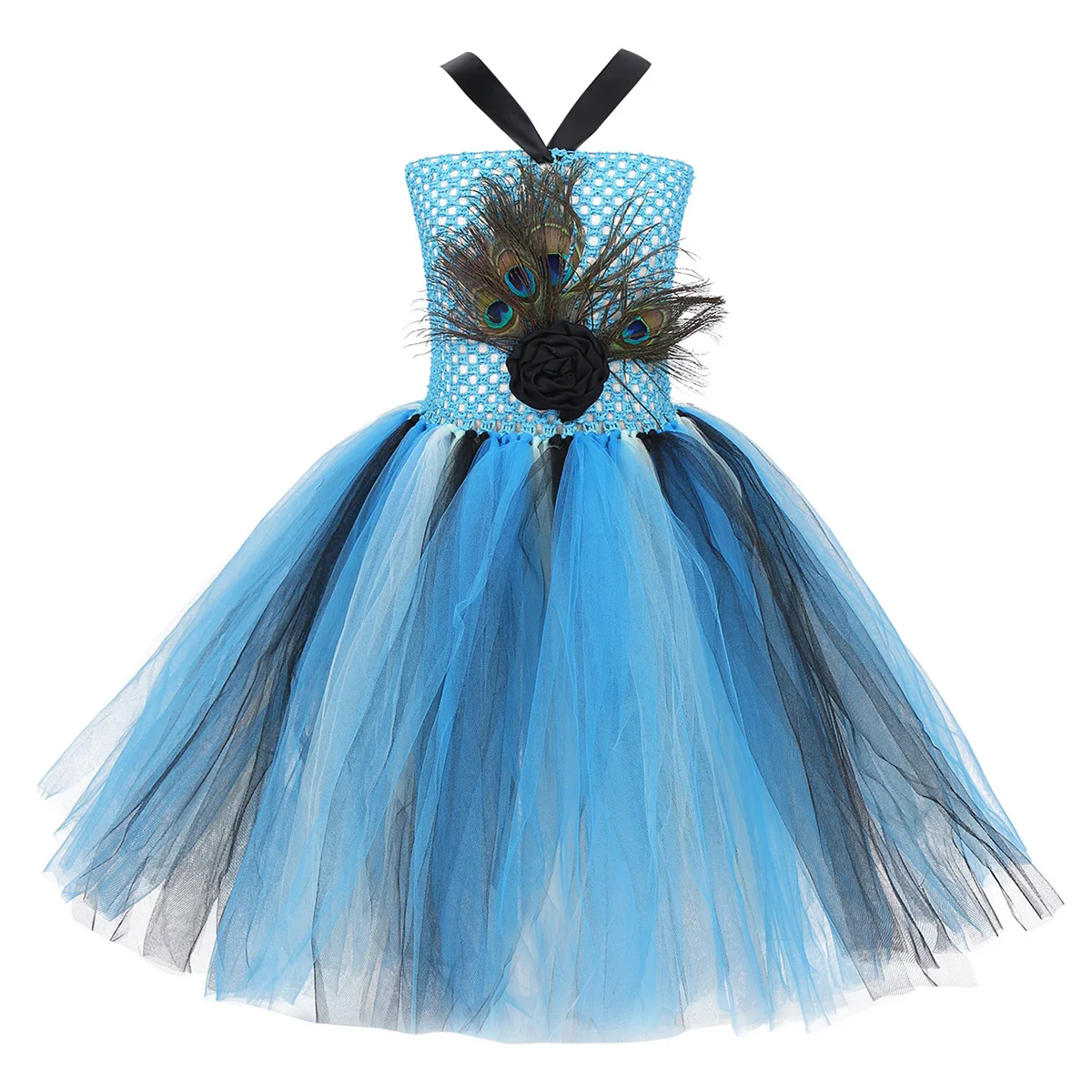 Регулируемый дизайн с лямкой на шее. Трикотажный трикотажный корсет с эластичным верхом, спереди украшен перьями павлина и цветами.
