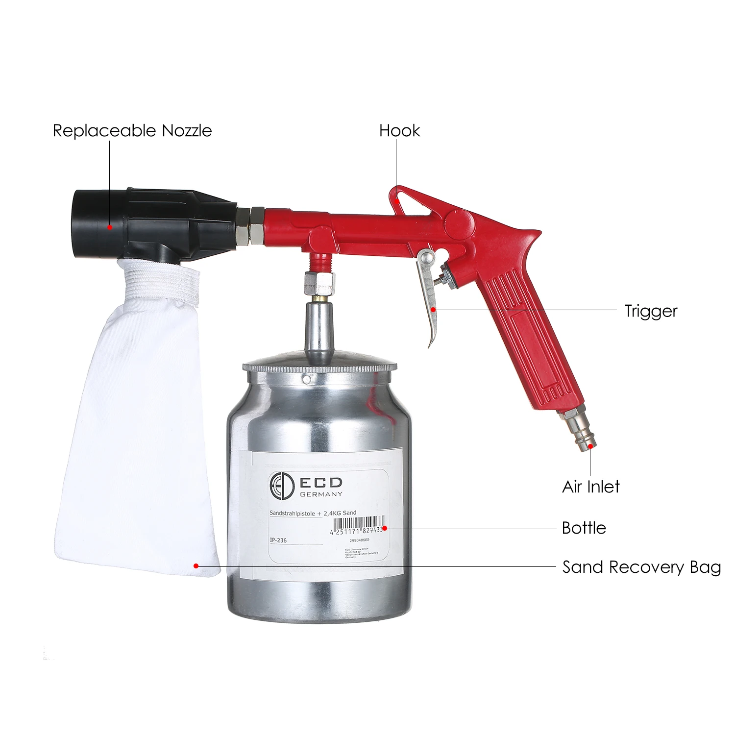 Воздушный Пескоструйный пистолет поставляется с бутылкой пескоструйного абразивного песка и разработан с мешком для пескоструйной обработки, таким образом, вы можете использовать его повторно.
