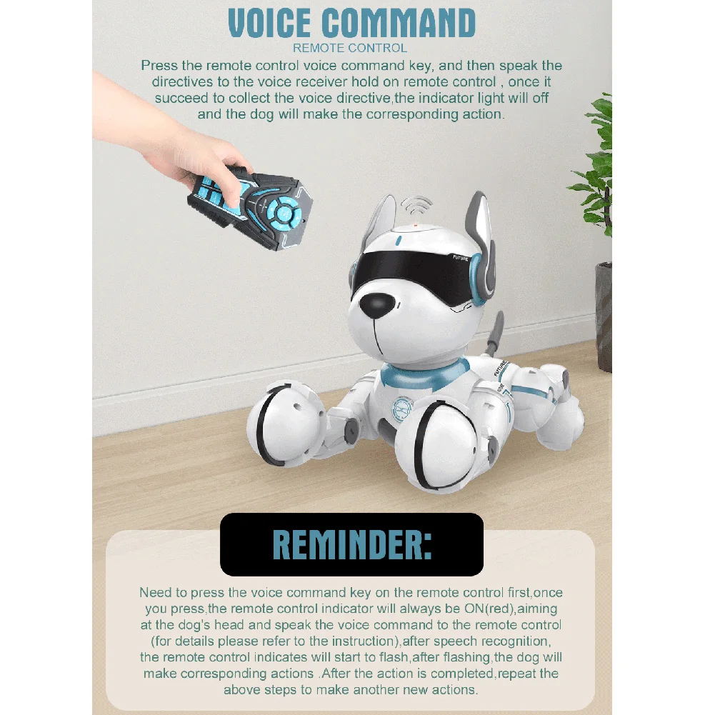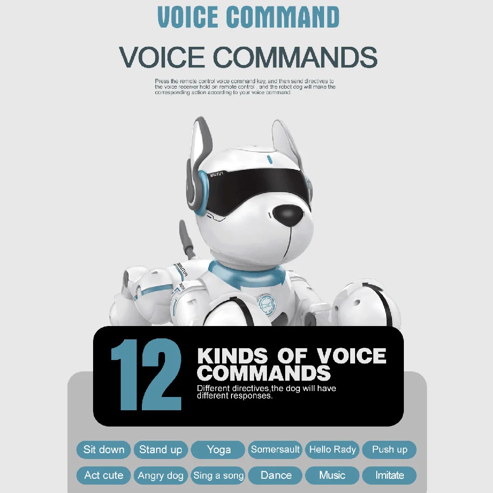 4. Голосовая команда: когда вы нажимаете клавишу голосового режима, есть 7 голосовых команд, чтобы дать устные инструкции собаке, чтобы стимулировать коммуникативные навыки детей.