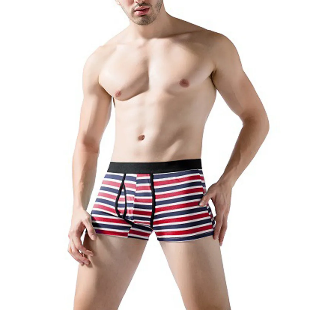 Мужские мягкие полосатые комбинированные трусы, мягкие дышащие трусики, сексуальные трусы